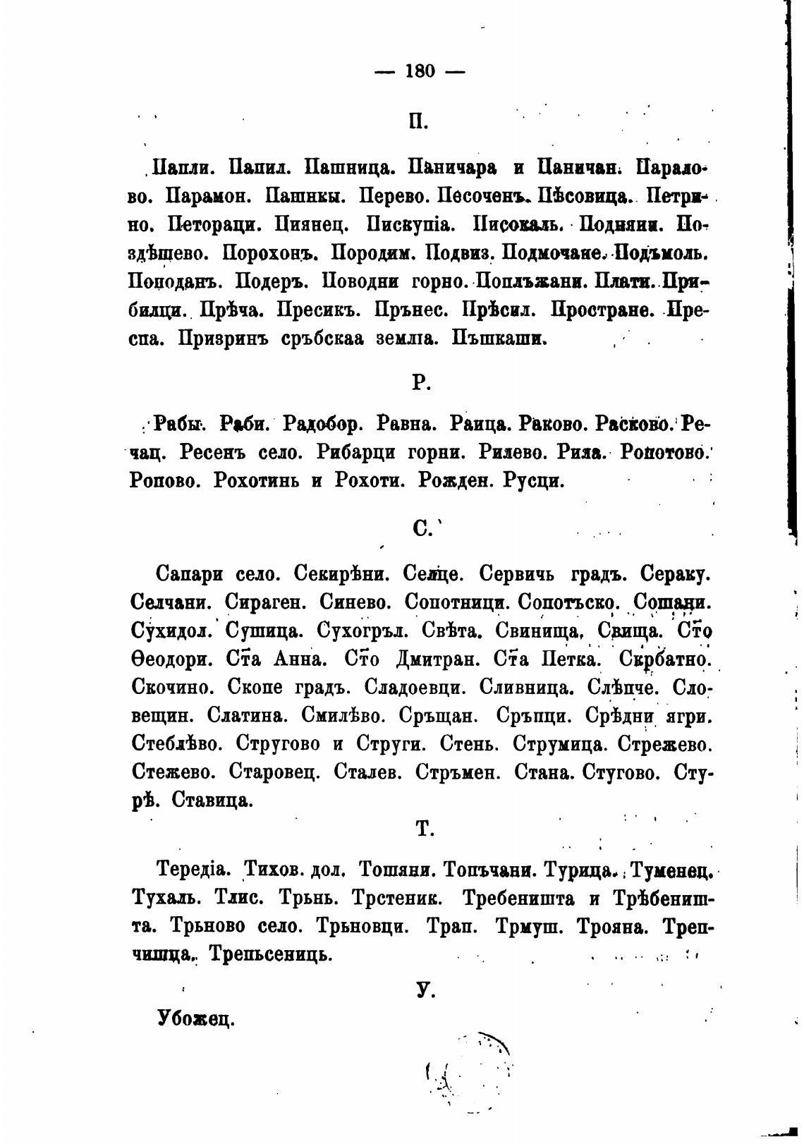 Тихов. дол. Тошяни. Топъчани. Турща. ; Туменец.