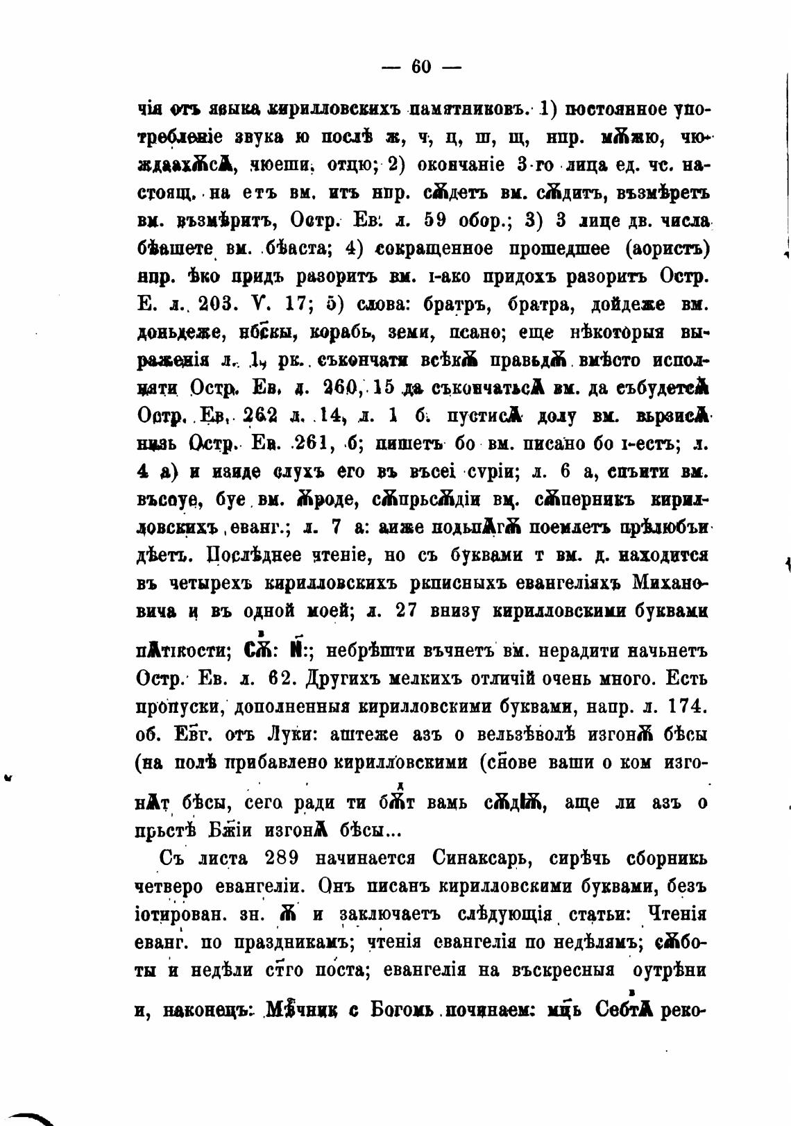 ниь Остр. Ев. .261, .б; пишеть 60 вм. писано 60 1-есть; л.