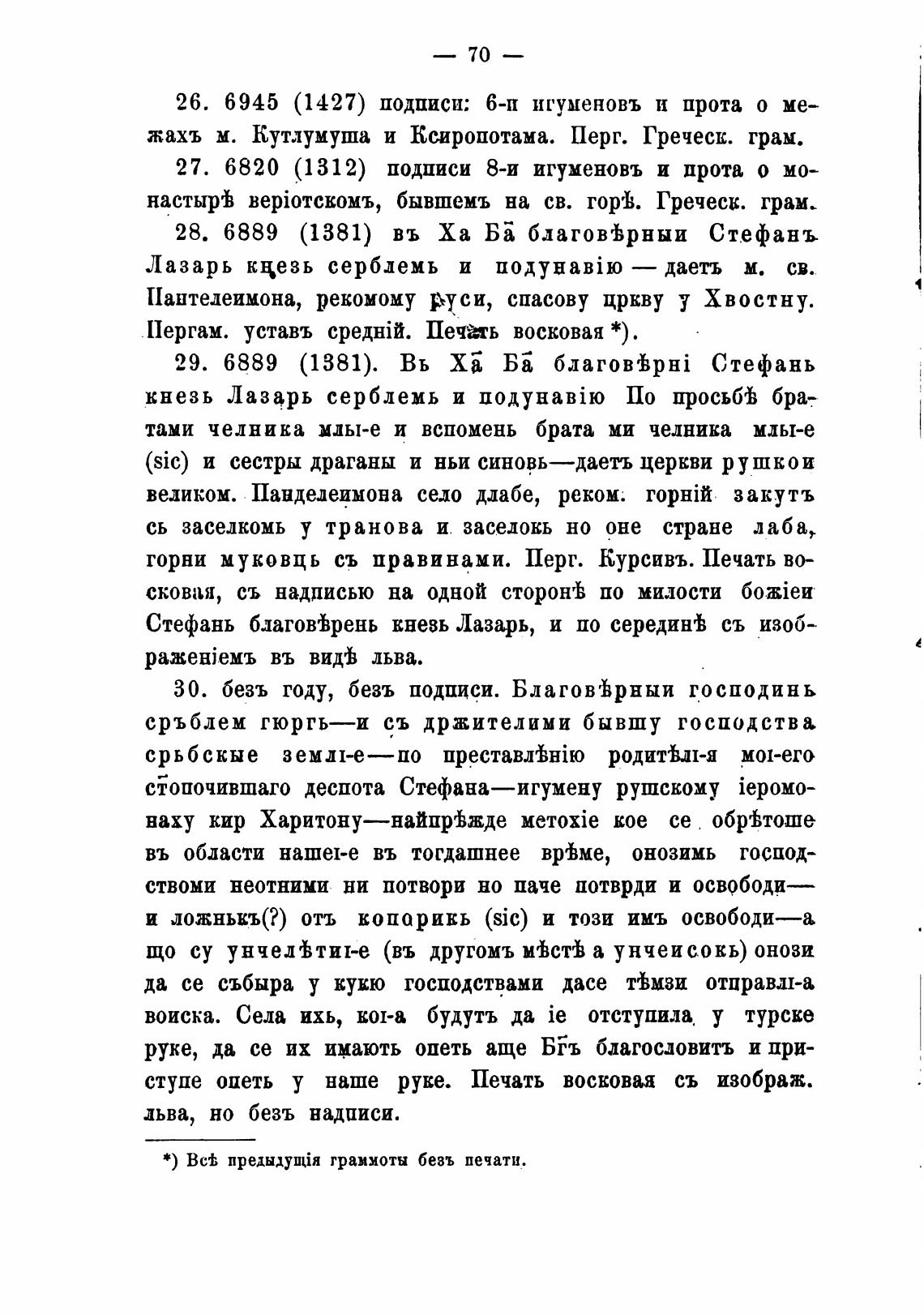 *) предыдупјя граммоты безъ печати.