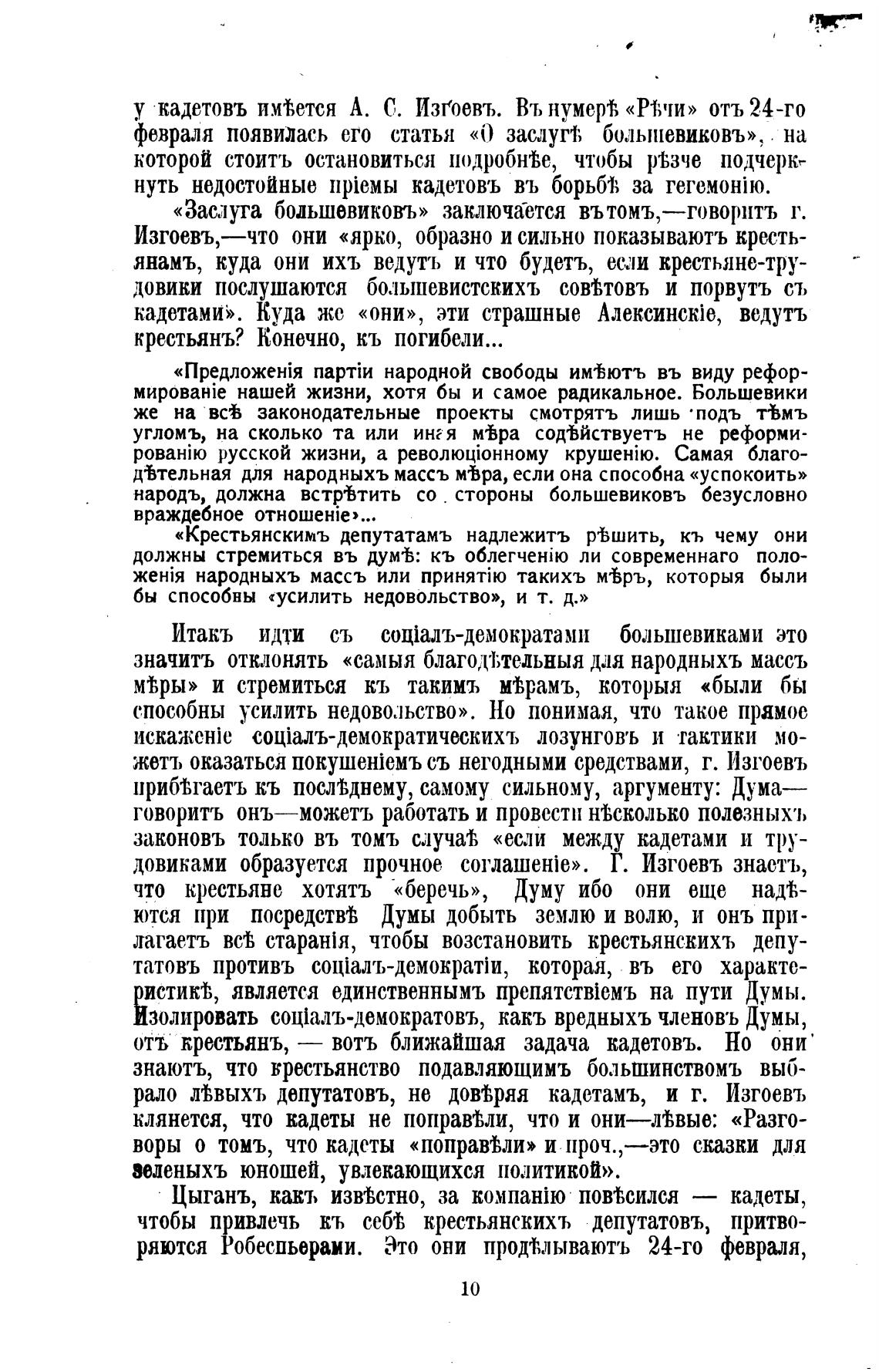 рало Лвыхъ депутатовъ, не довт,ряя кадетамъ, и г. Изгоевъ