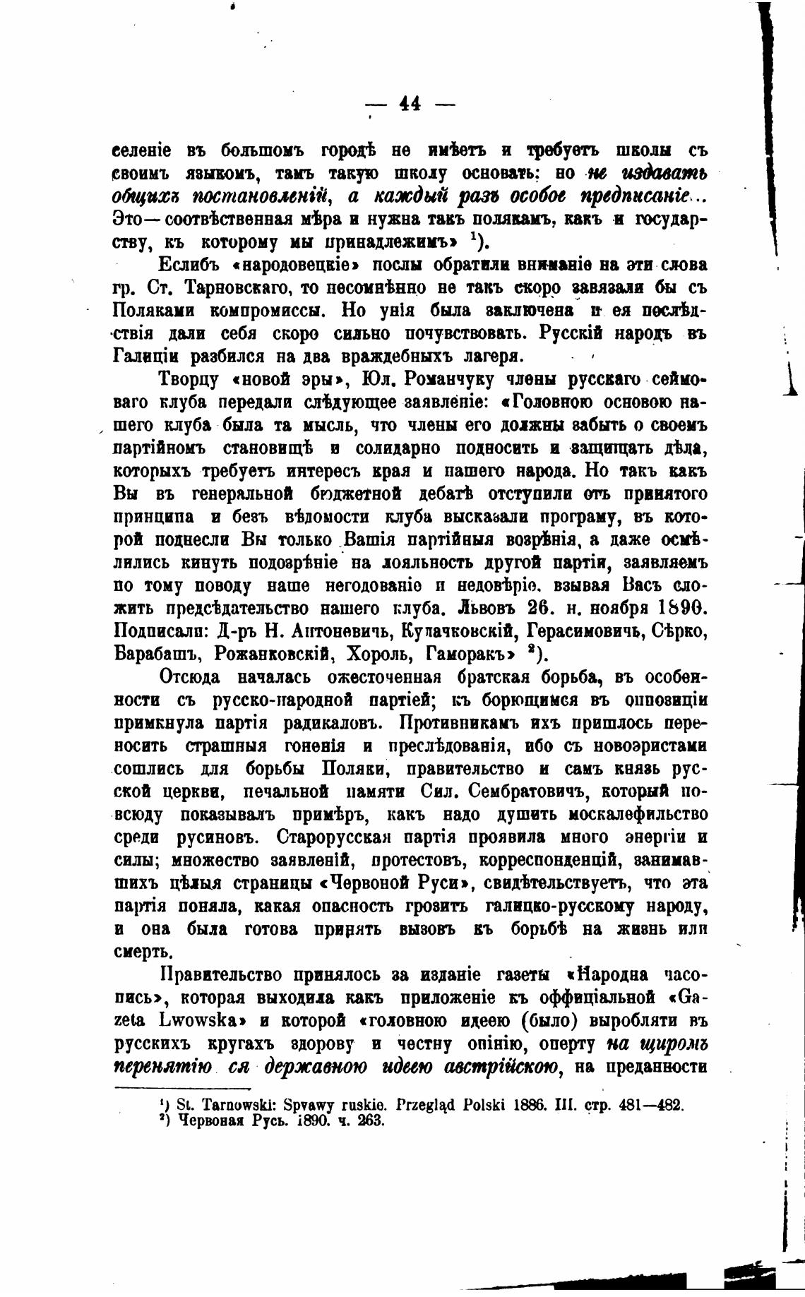 к) SL. Tarnowski: Spvawy ruskie. Przeglad Polski 111. стр. 481 482.