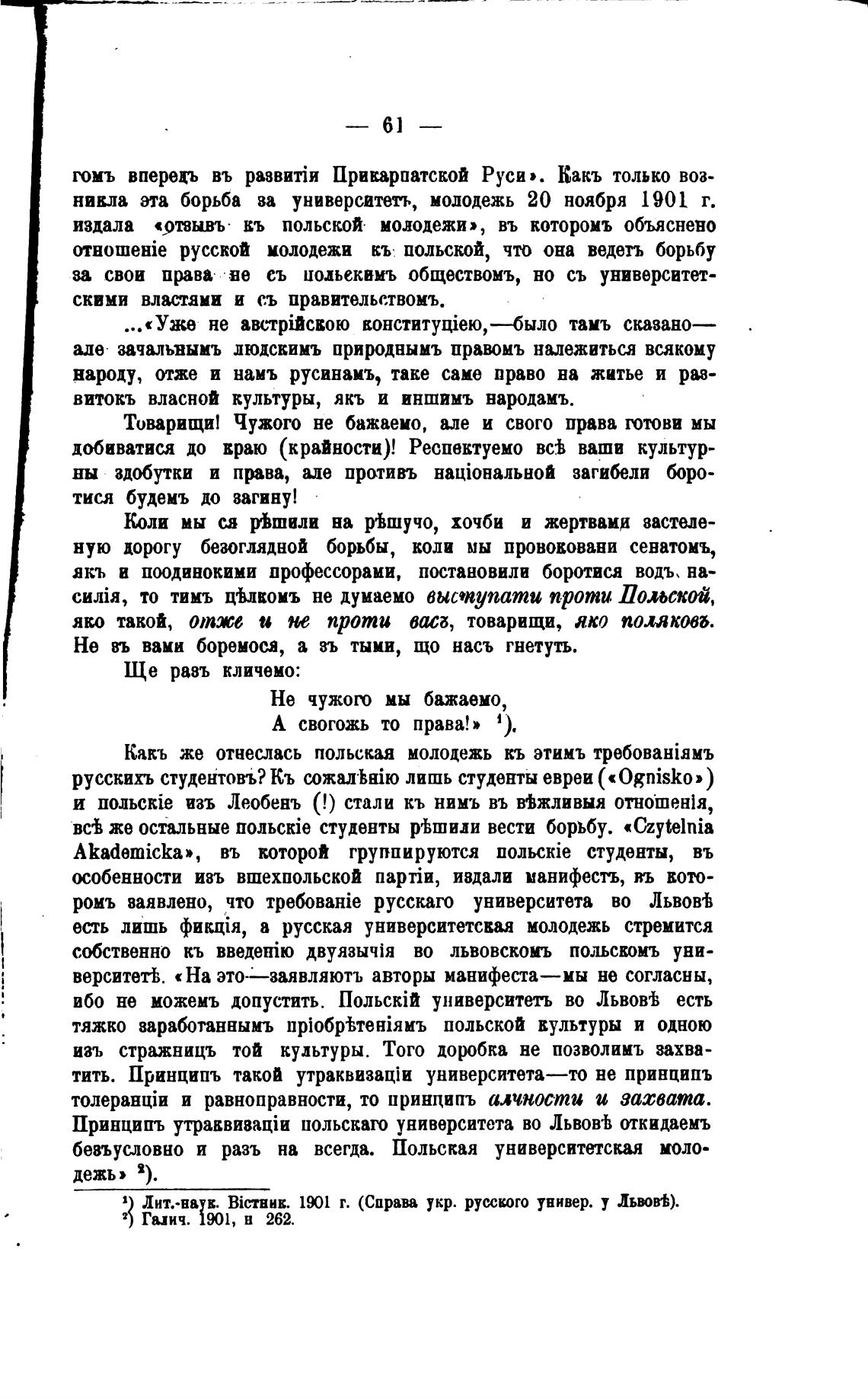 ибо не можемъ допустить. университеть во Львов± есть
