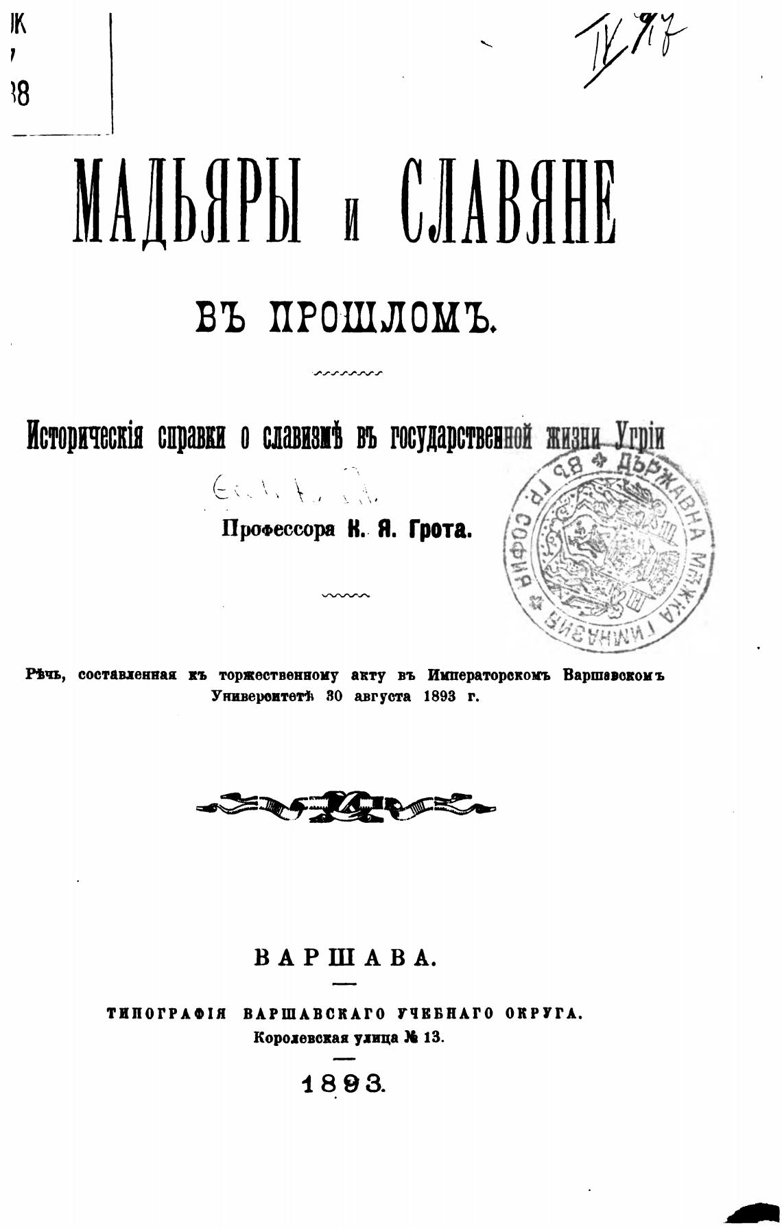 ТИПОГРАФИ ВАРШАВСКАГО УЧВВНАГО ОКРУГА.