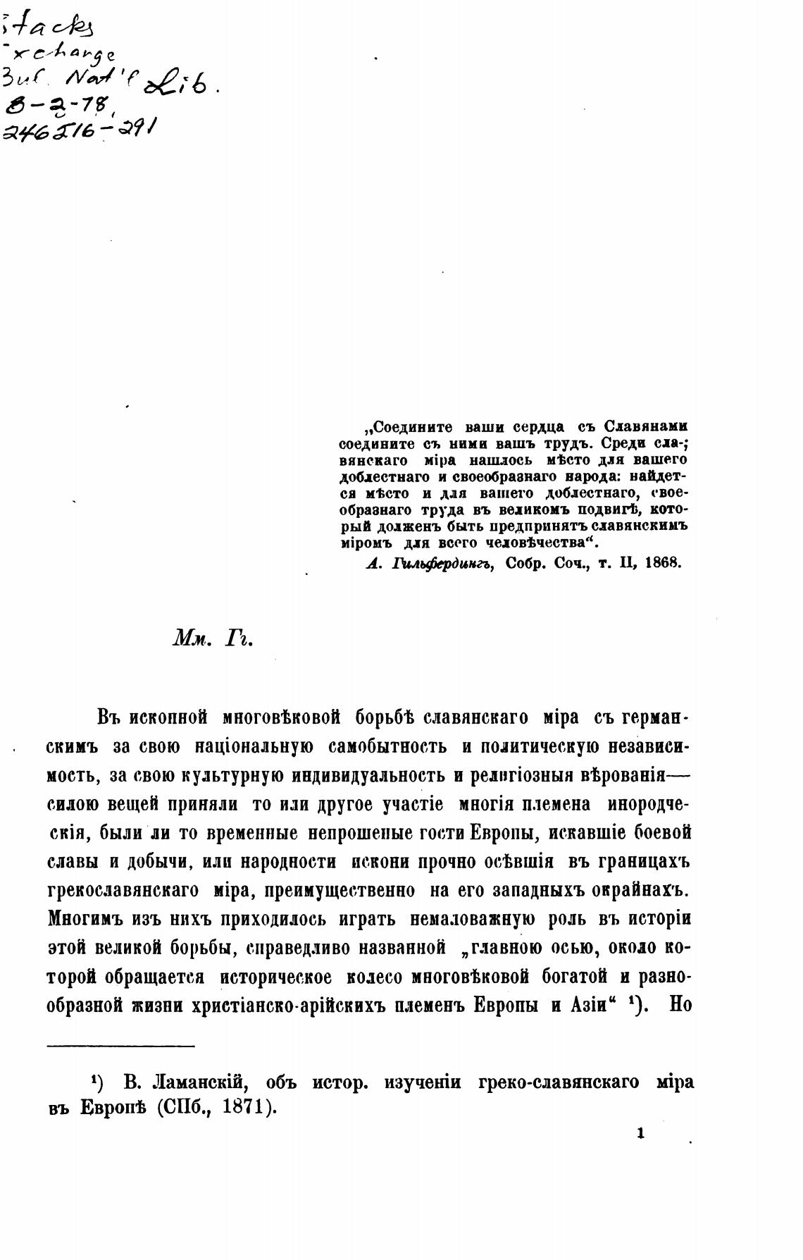 1) В. объ истор. греко-славжнскаго Mipa