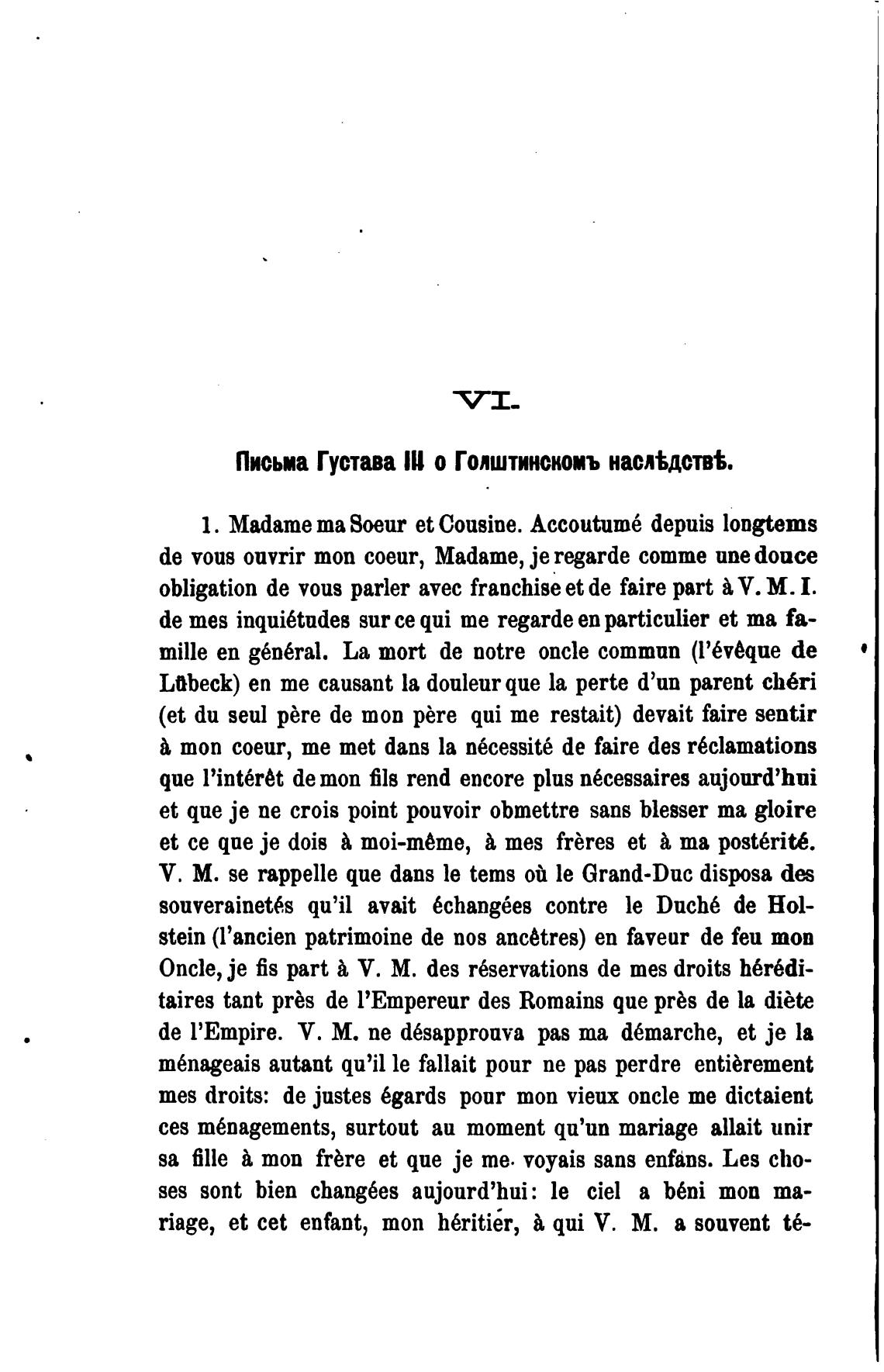 Письма Густава lll о Голштинскомъ насл%дстж