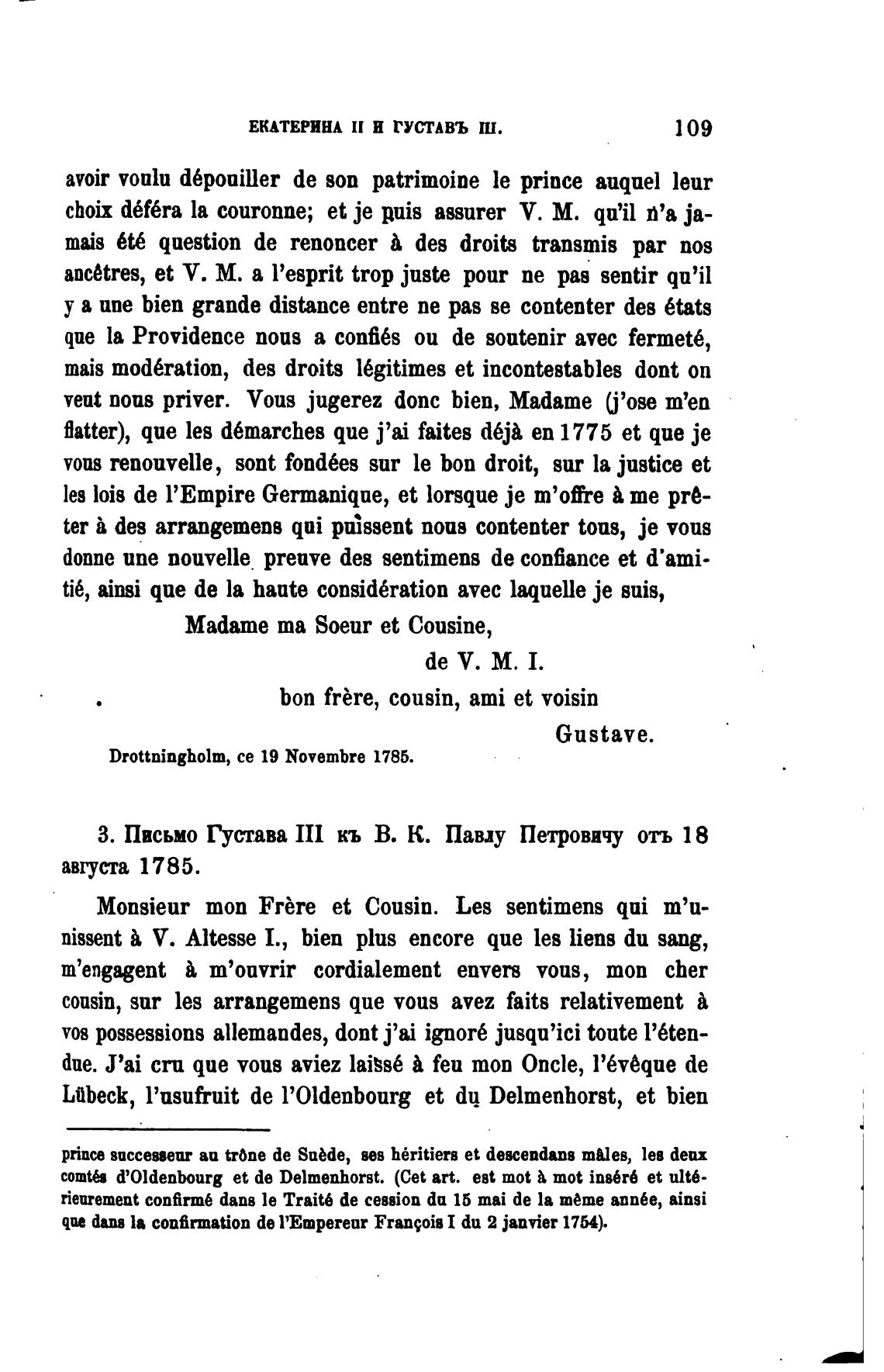 З. Письмо Густава 1П кь В. К. Павлу Петровичу отъ 18