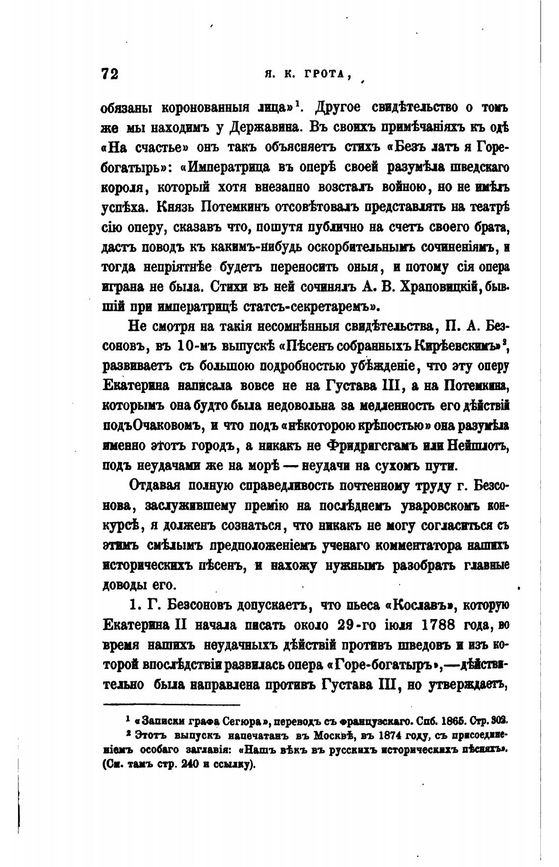 а Записки гра•а Сегюра», переводъ съ •равцуикию. СПб. Ст. П.