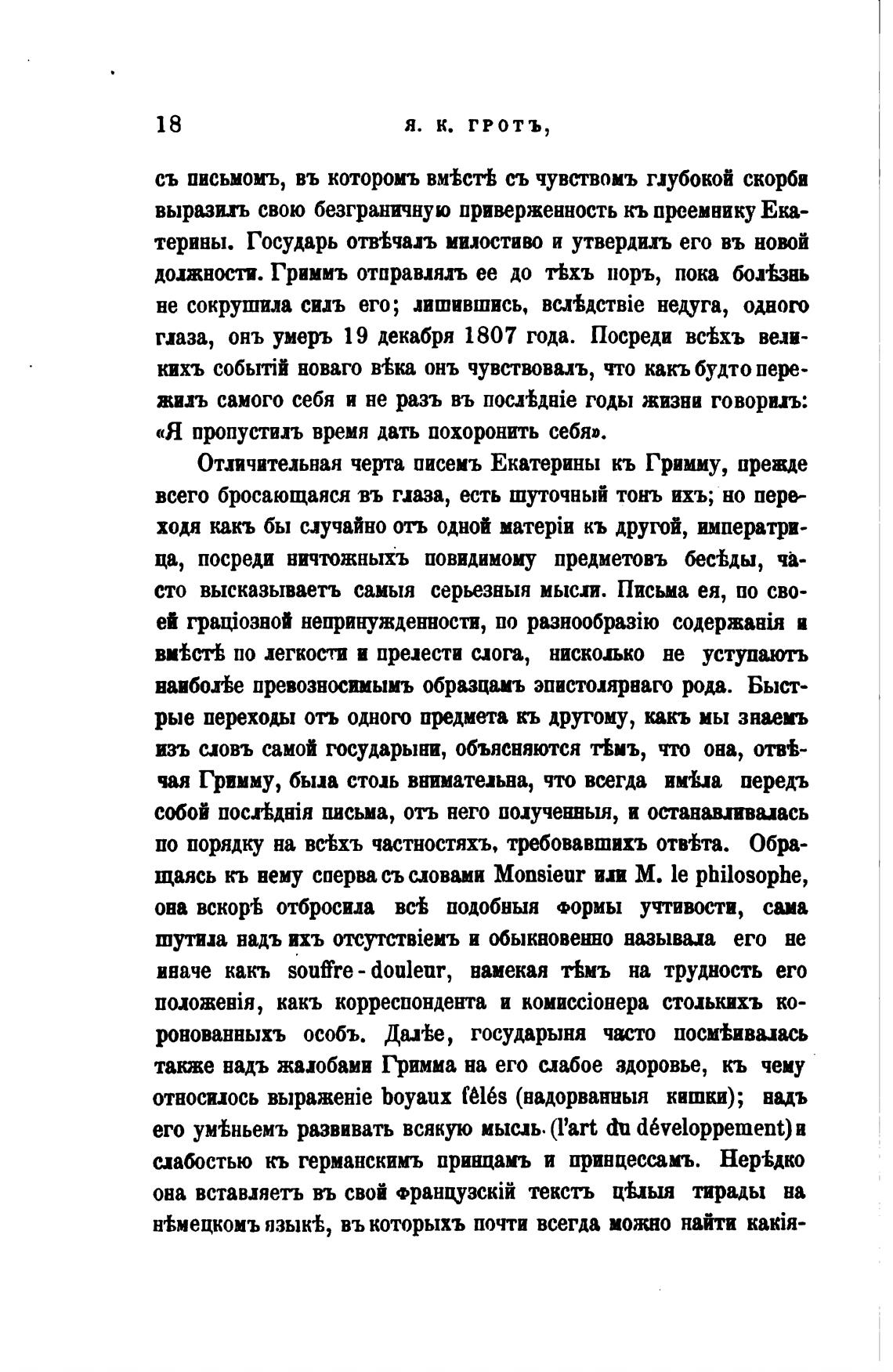 Отличительная черта писемъ Екатерины кь Гримму, вревде