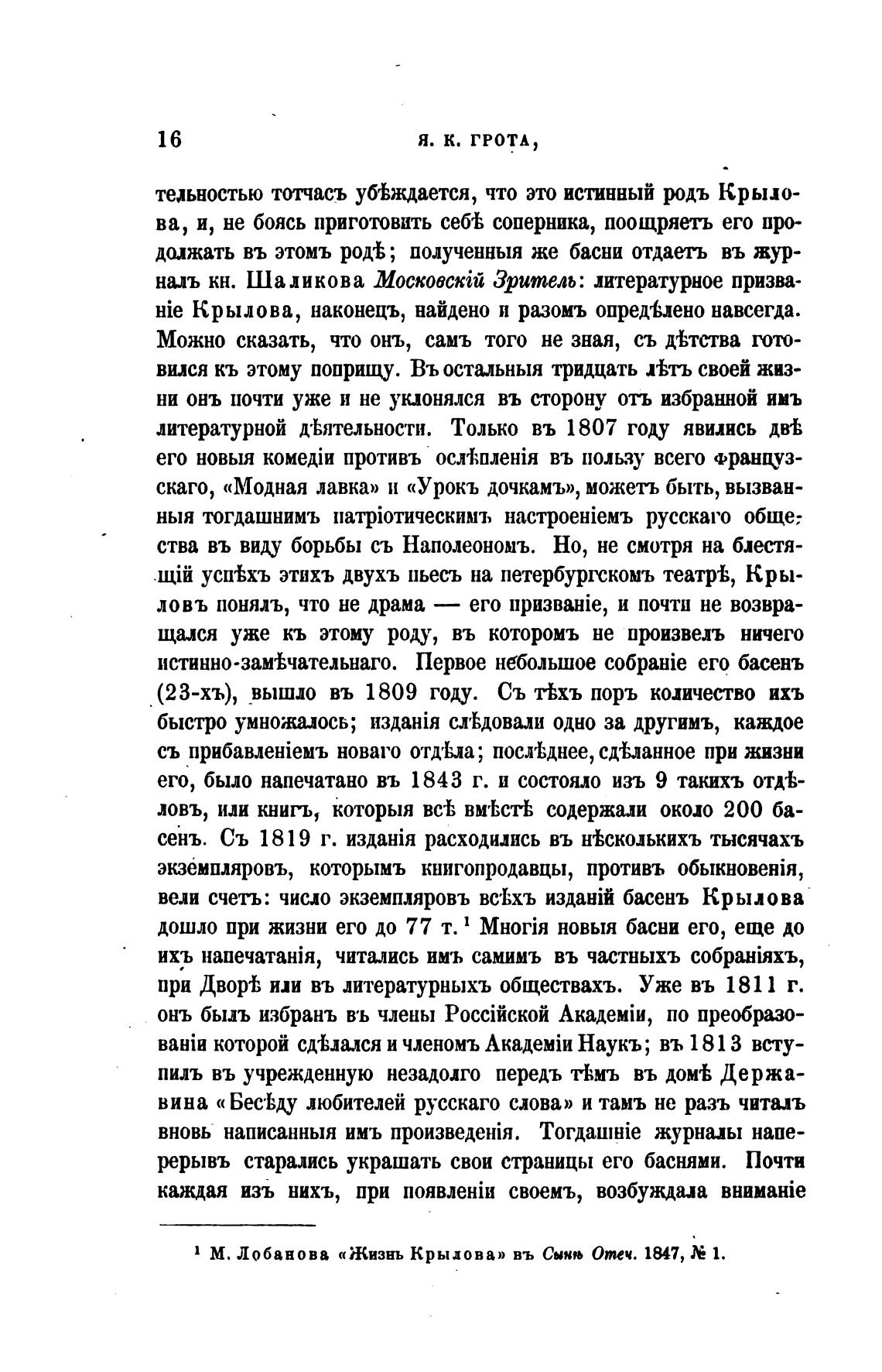 М. Лобанова «Жизнь Крылова» въ Сннњ Отеч. 1847, 1.