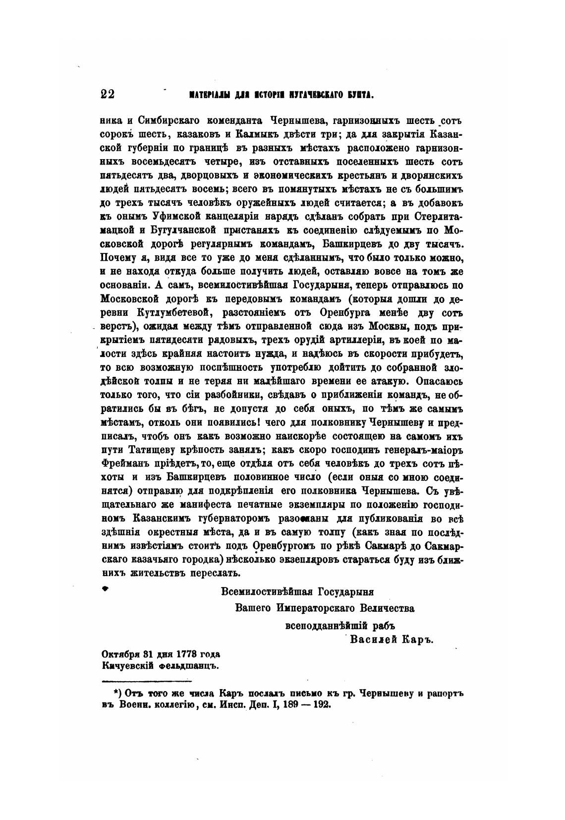 й) Отъ же числа Карь послал письмо кь гр. Червышеву и рапортъ