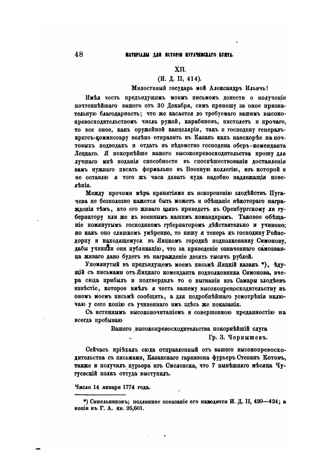 Число 14 января 1774 года.