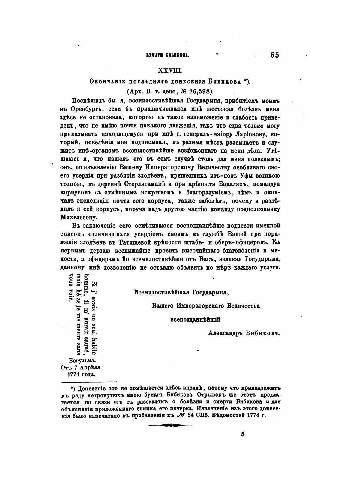 кь ряду нетронутыхъ мною бумать Бибикова. Отрывокъ же этоть предп-