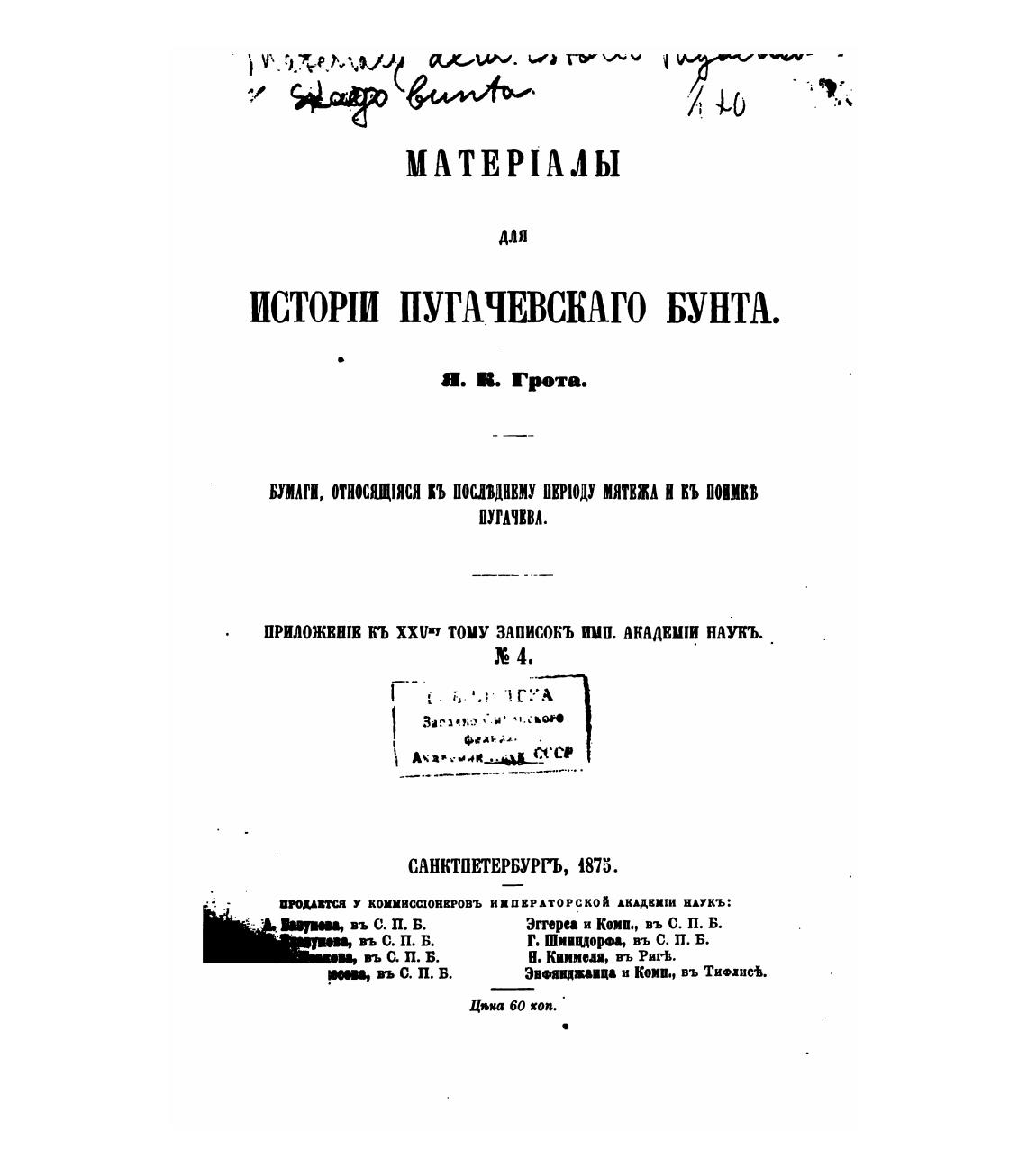 ИСТОШ ПУГАЧЕВСКАГО БУНТА.