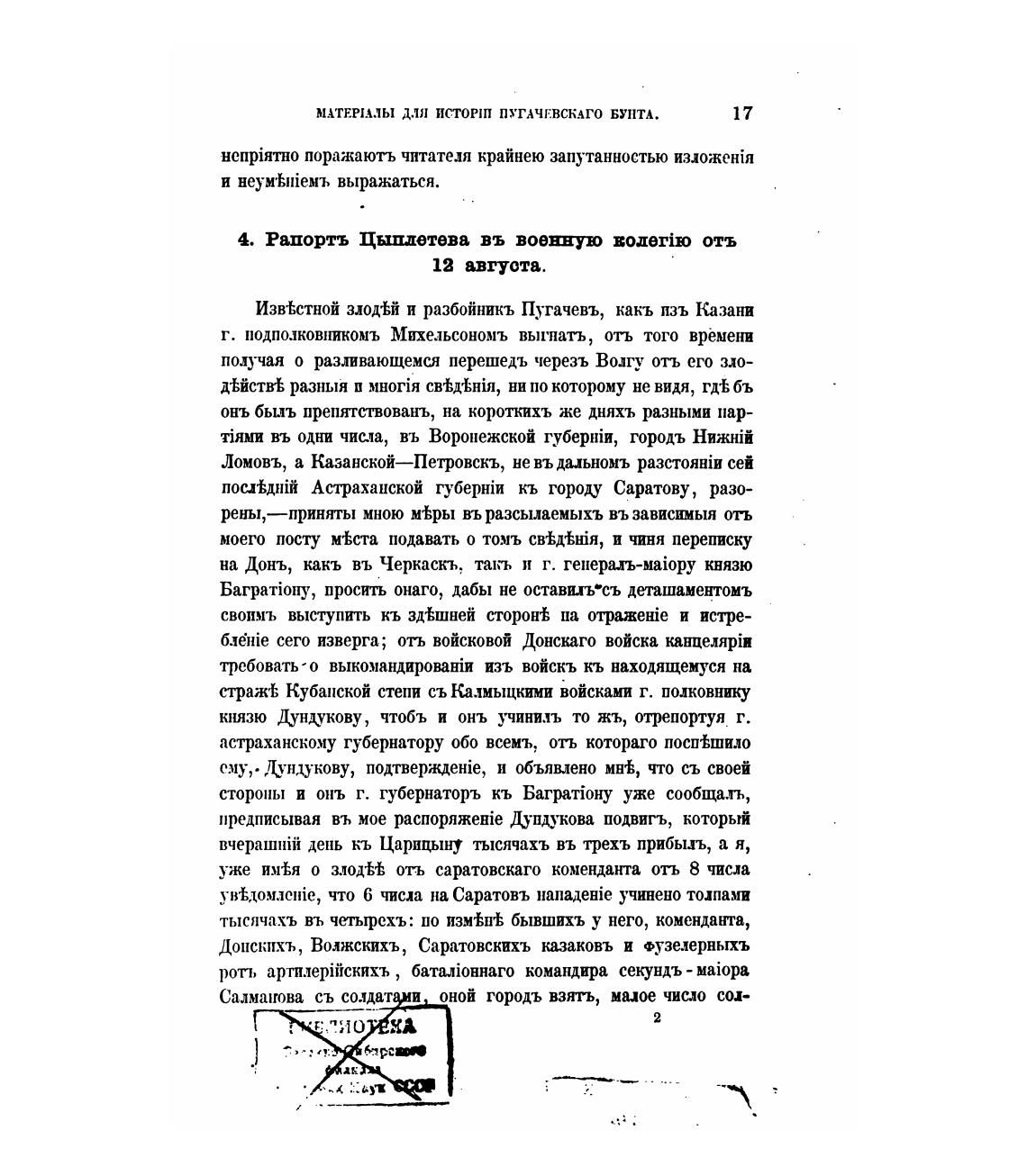 МАТЕРIАЛЫ ДЛЯ исторш ПУГАЧЕВСКАГО БУНТА.