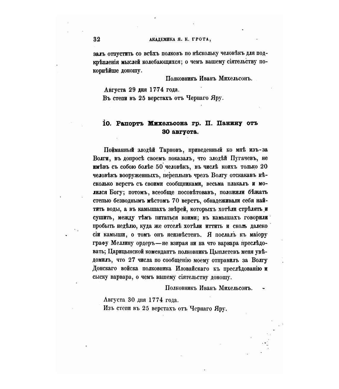 i0. Рапорть Михедьоона гр. П. Панину отъ