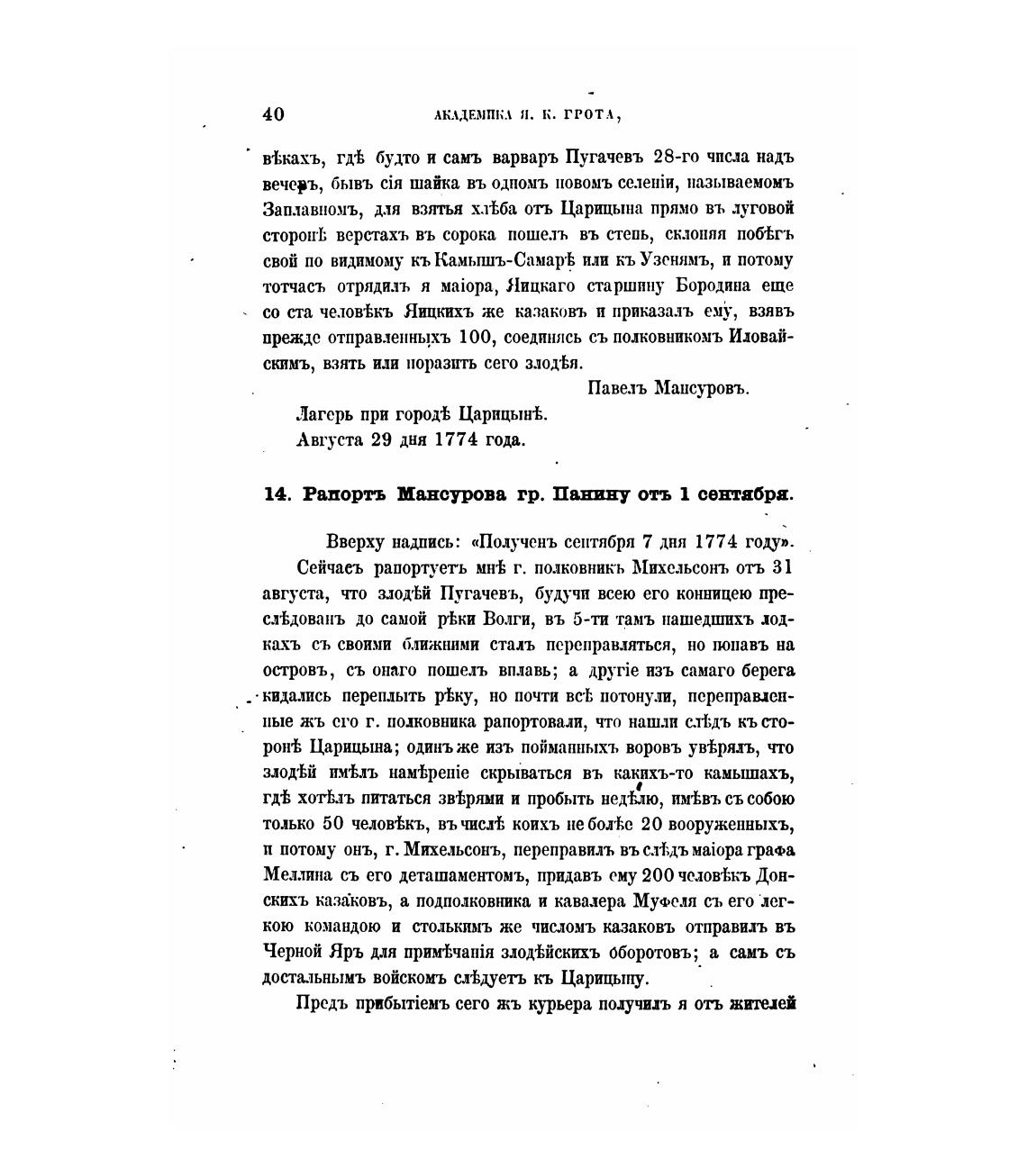 14. Рапортъ Мансурова гр. Панину отъ 1 сентября.