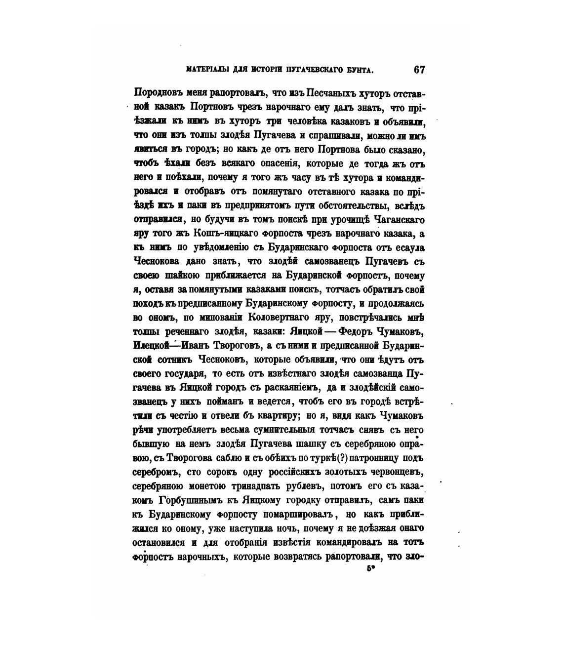яру того жъ Кошъ-яицкаго Форпоста чрезъ нарочнаго казака, а