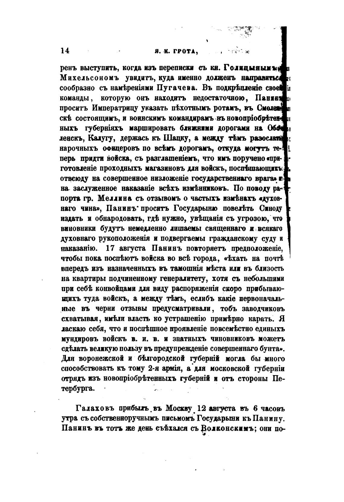 Панинъ въ тоть же день съЬхися съ Волконскимъ; они по-