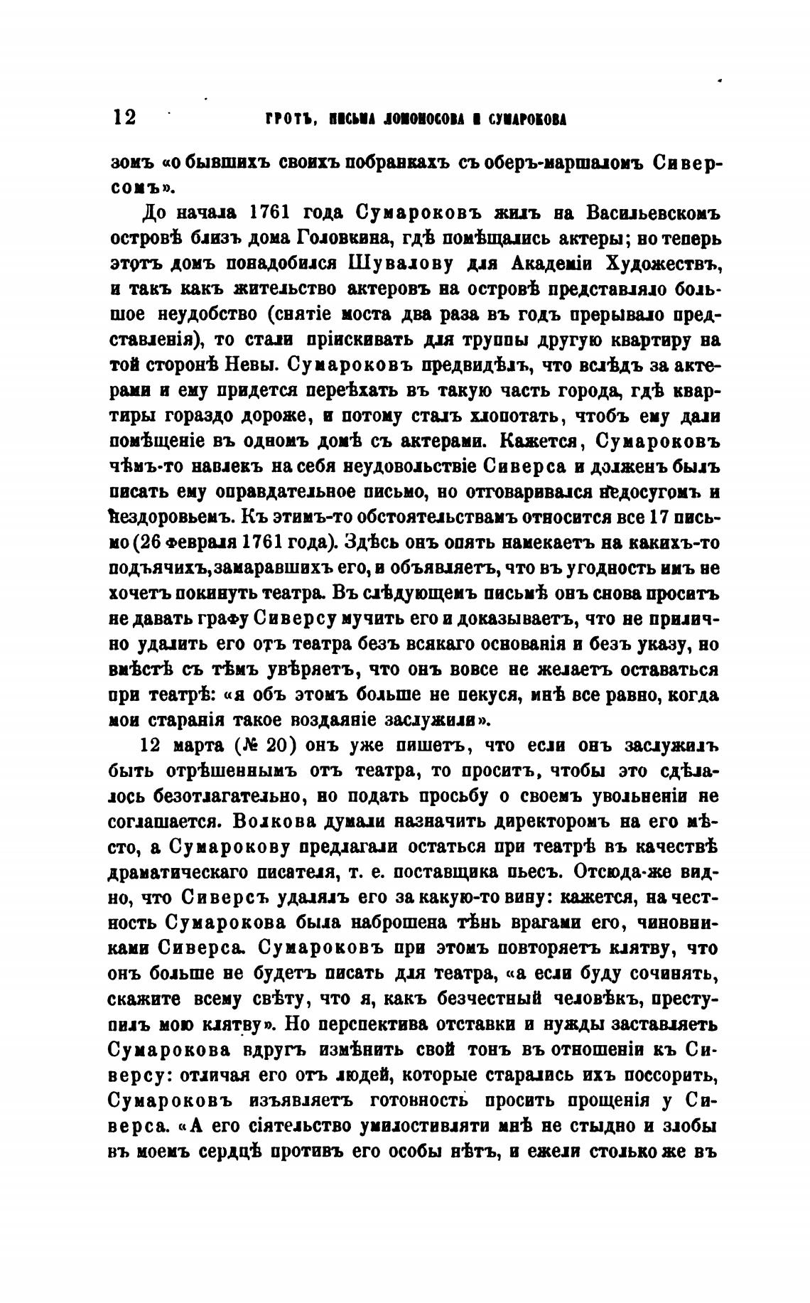 До начала 1761 года Сумароковъ жи.иъ ва Васильевскомъ