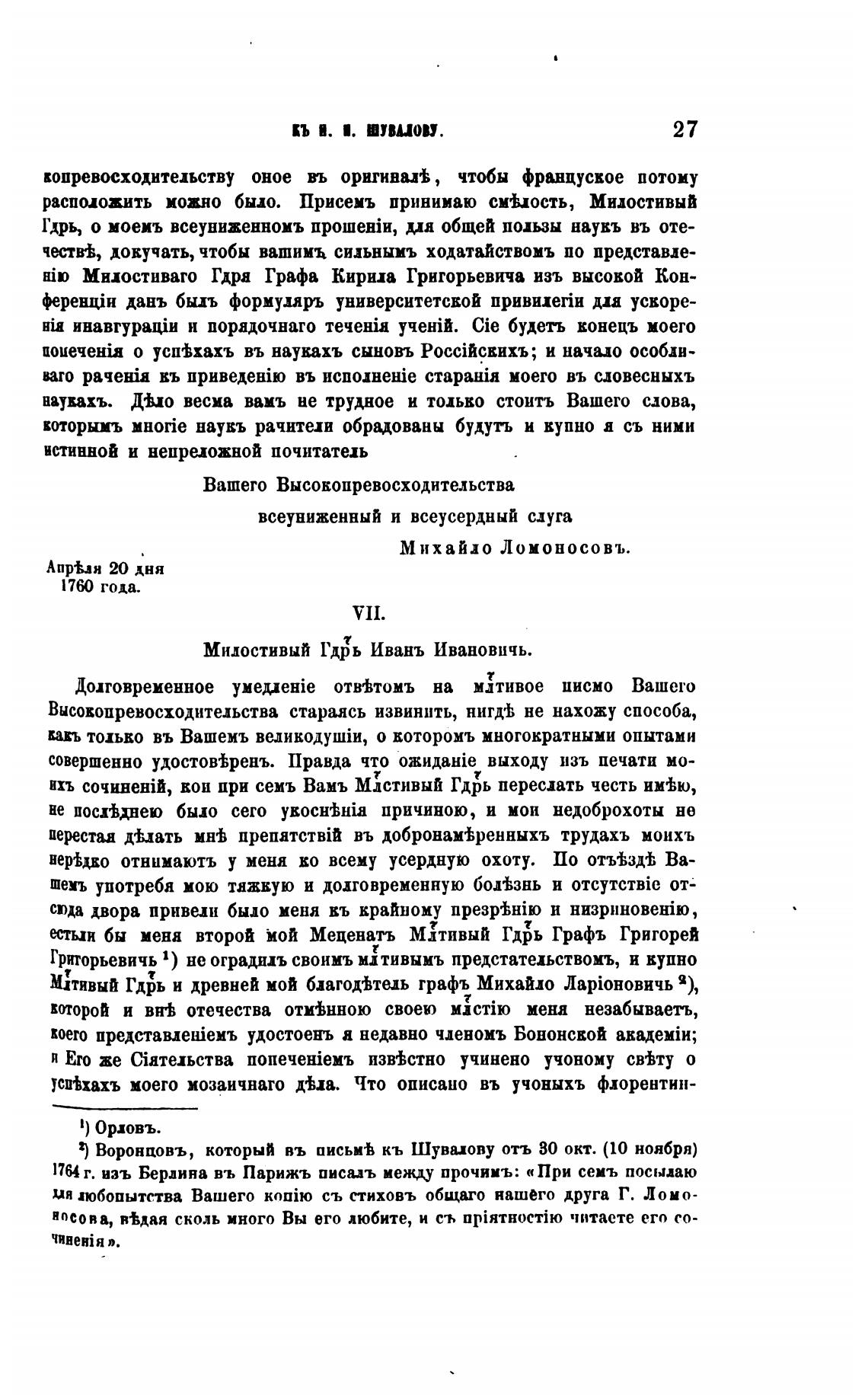 х) Воронцовъ, который въ письив кь Шувиову отъ 80 окт. (10 ноября)