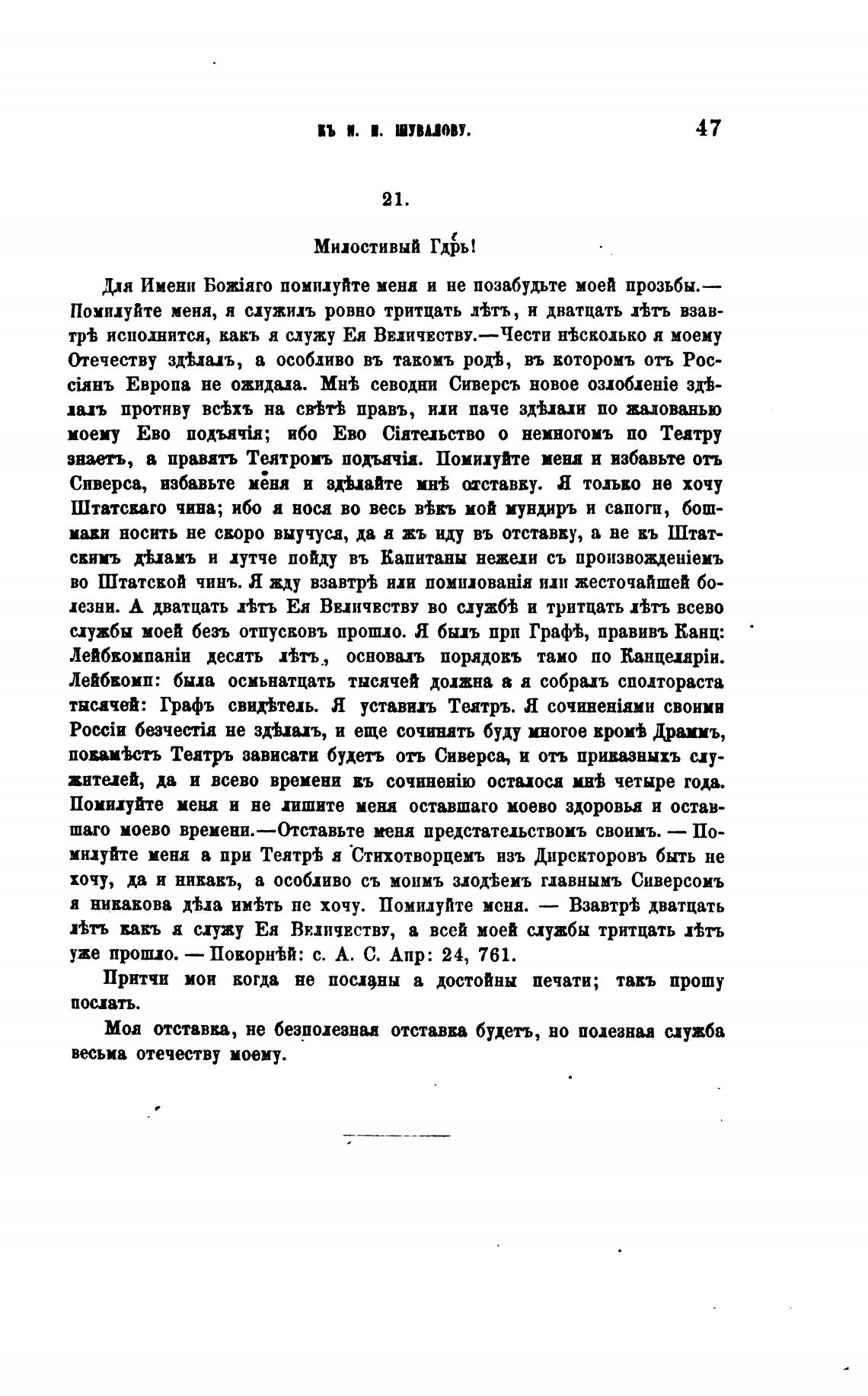 Помилуйте меня, я служилъ ровно тритцать л±тъ, и дватцать Ать взав-