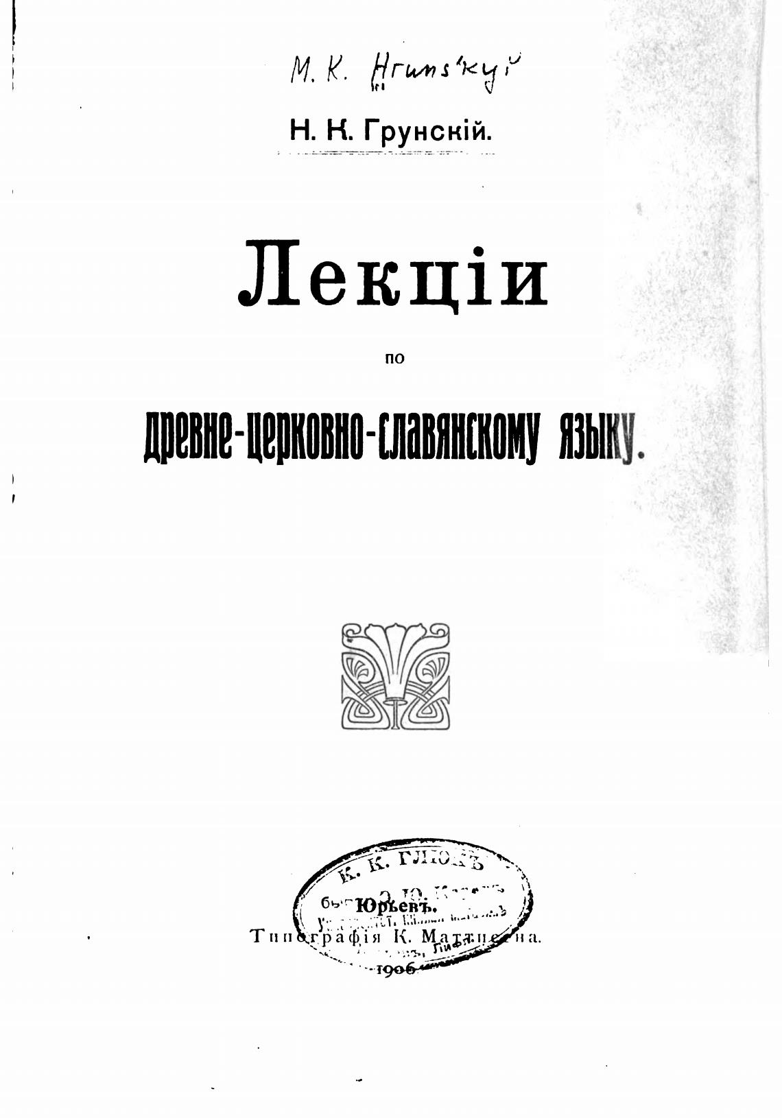 Лекции по древне-церковно-славянскому языку. - Грунский Н. К.
