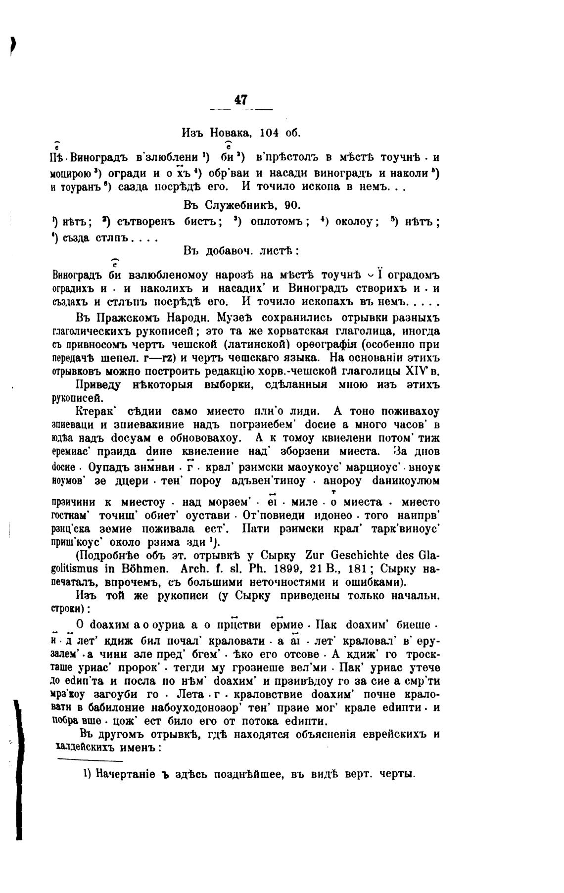 отрывковъ можно построить хорв.-чешской глаголицы XIV в.