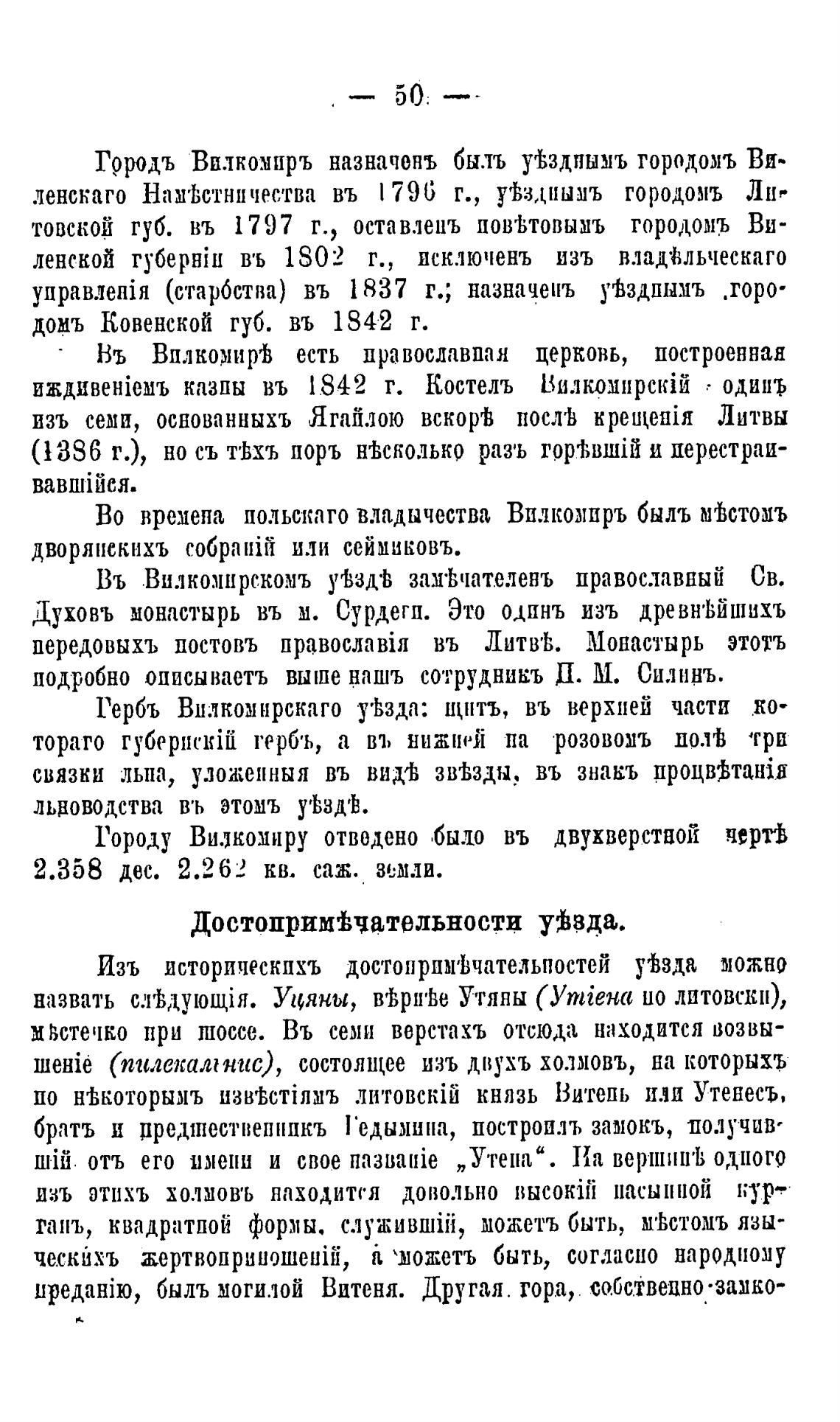 казпы въ 1842 г. Костелъ Вилкомирс\йй одинъ