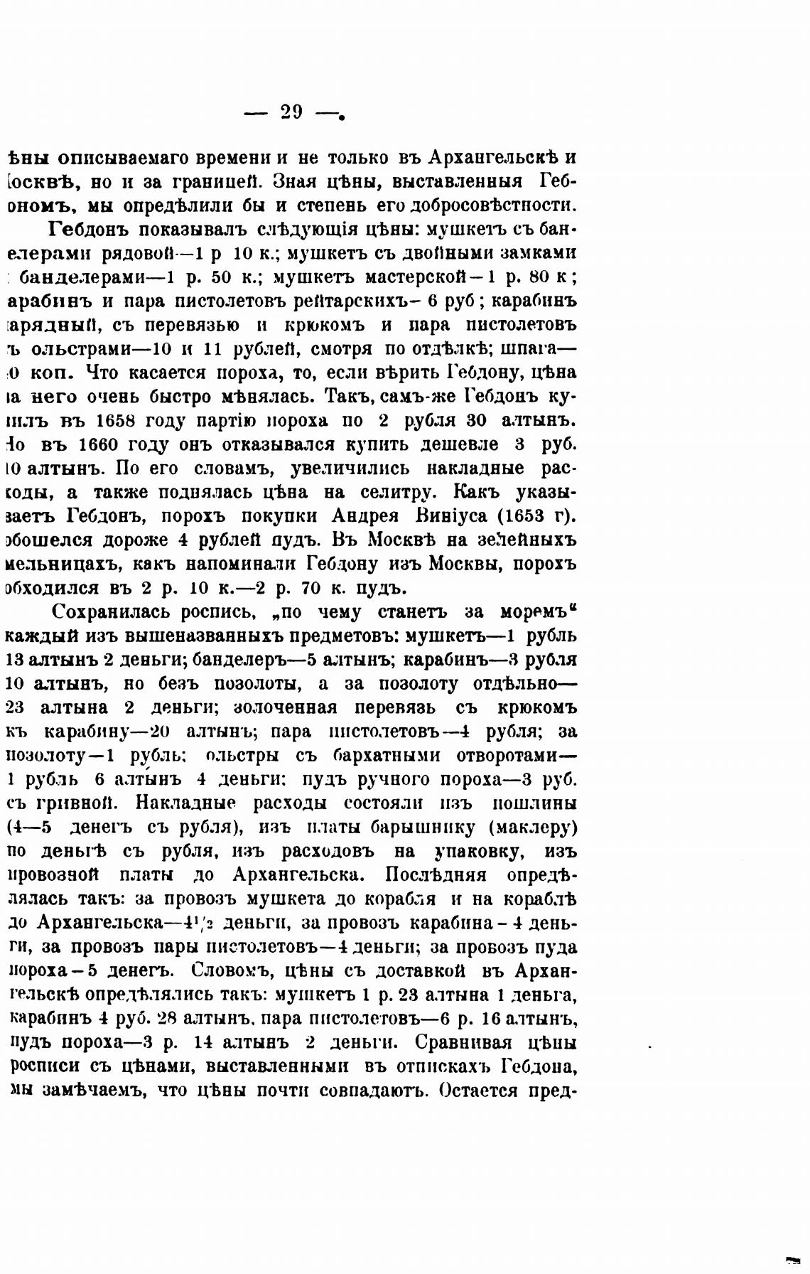 карабинъ 4 руб. 28 алтынъ, пара пистолетовъ—б р. 16 а.лтынъ,