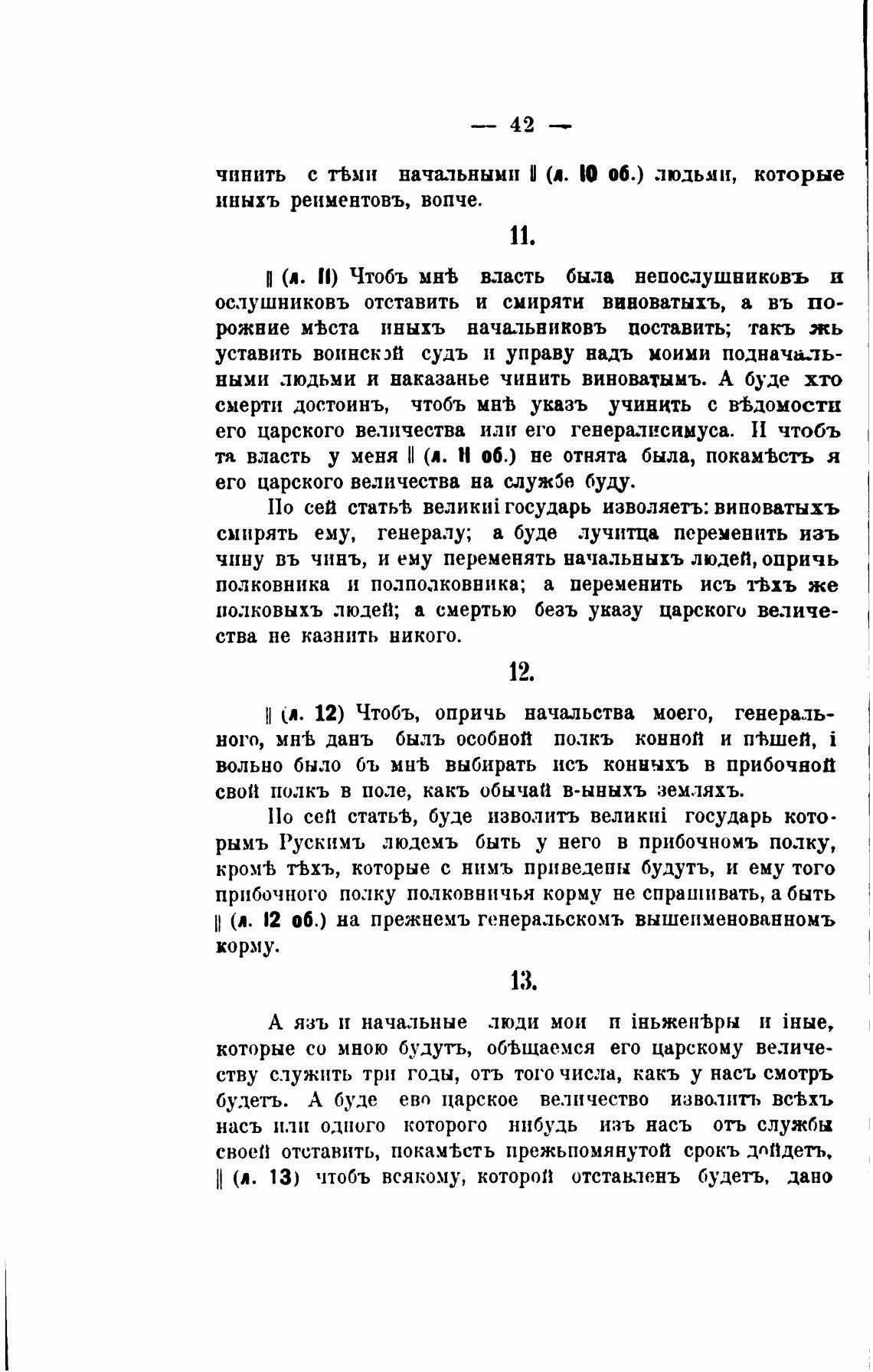 Н (л. 12) Чтобъ, опричь начиьства моего, генераль-
