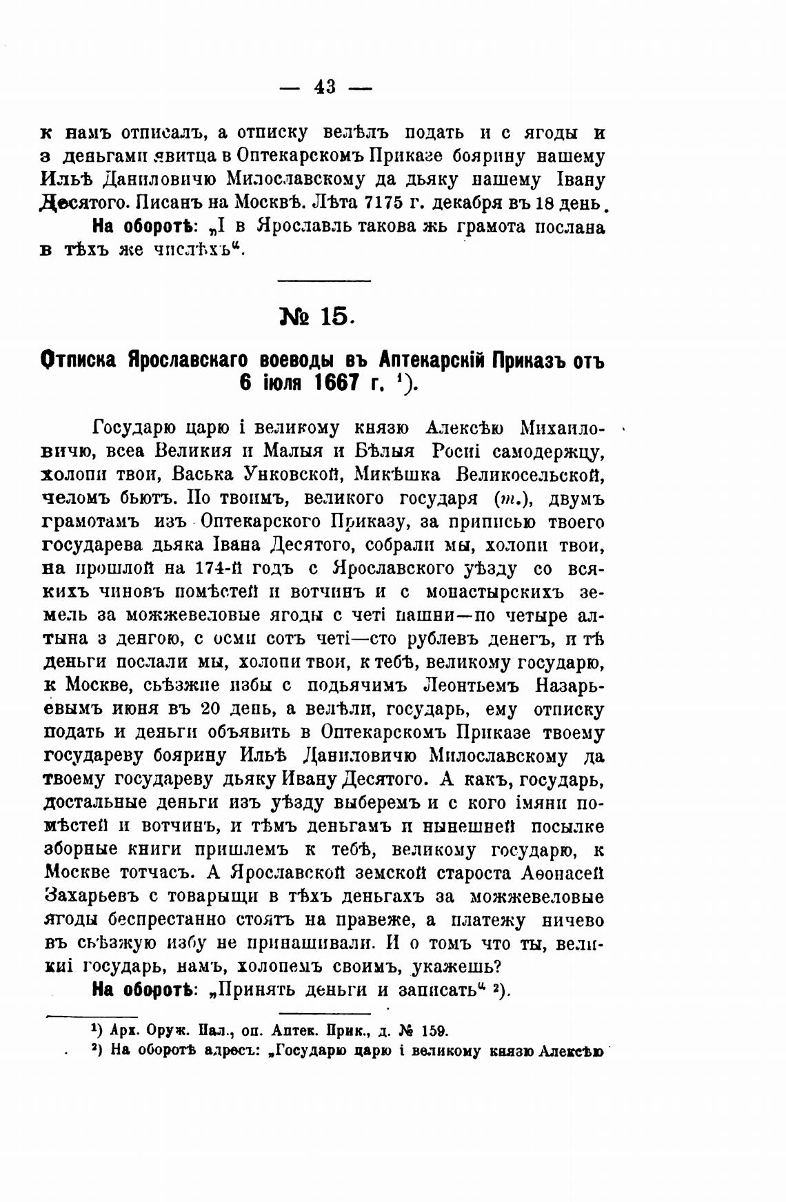 Отписка Ярославскаго воеводы въ Anrekapckii Приказъ отъ