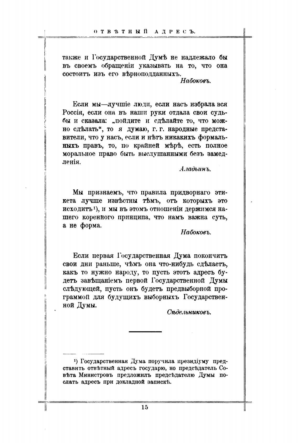 ставить отв•ћтный адресъ государю, но предс%датель Со-