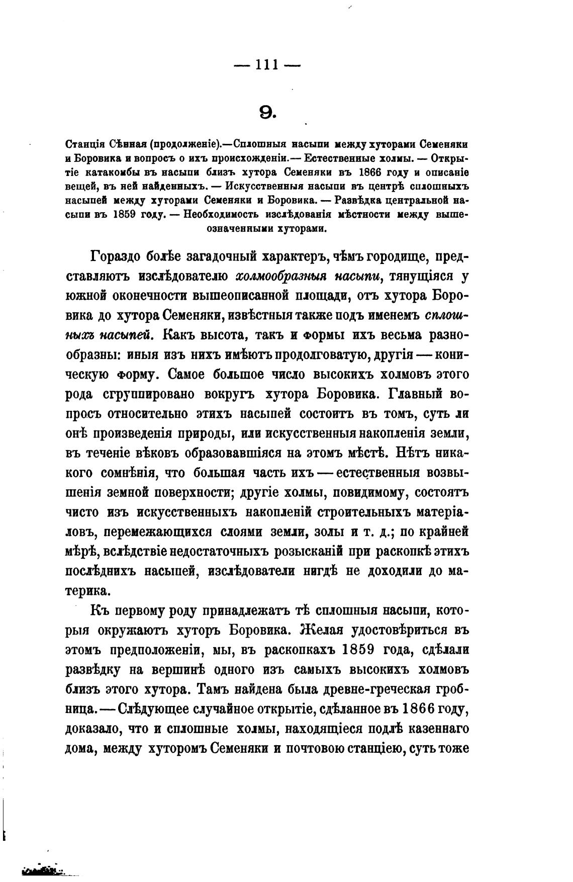 насыпей между хуторами Семеняки и Боровика. — Разв%дка центральной на-
