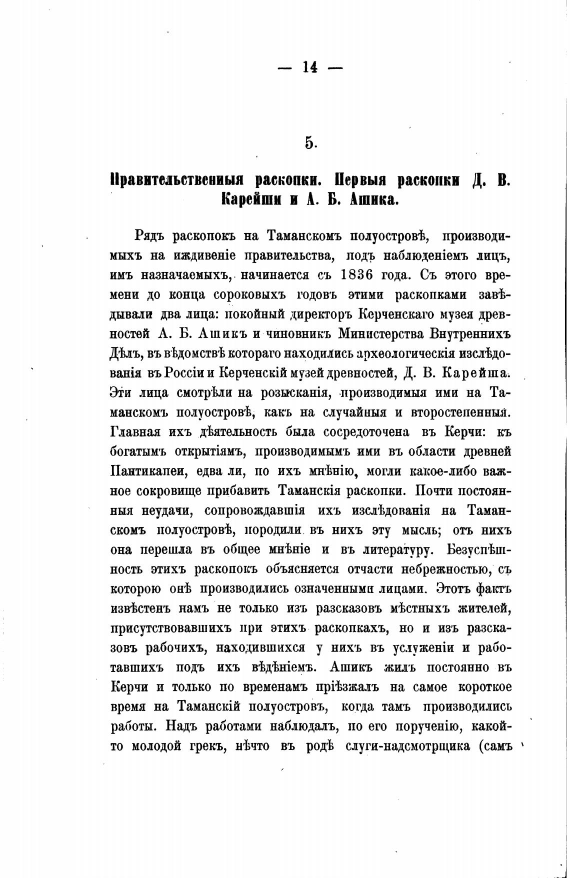 Рядъ раскопокъ на Таманскомъ полуострой, производи-