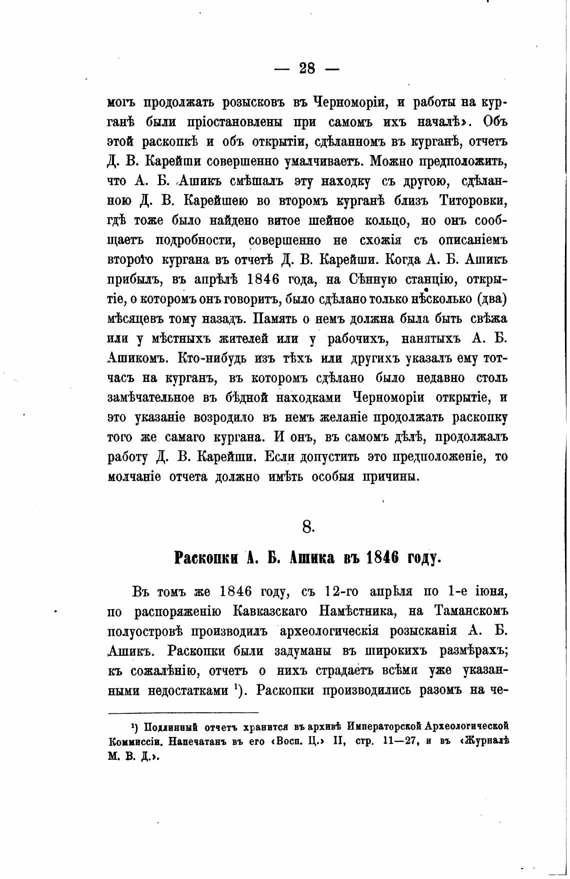 1) ПоџвнвыИ отчетъ хранится въ архи“ Императорской Археологической