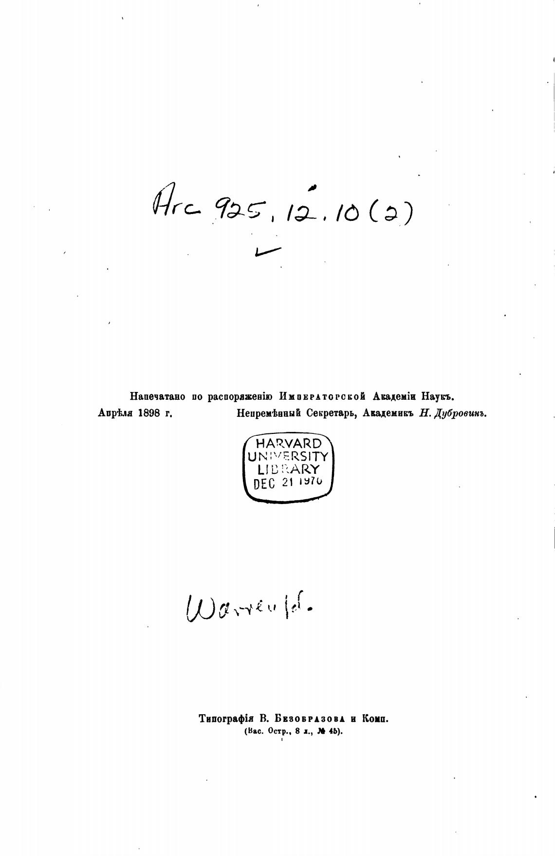 Напечатано ио pacuopazeHio ИМПЕРАТОРСКОЙ Наукъ.