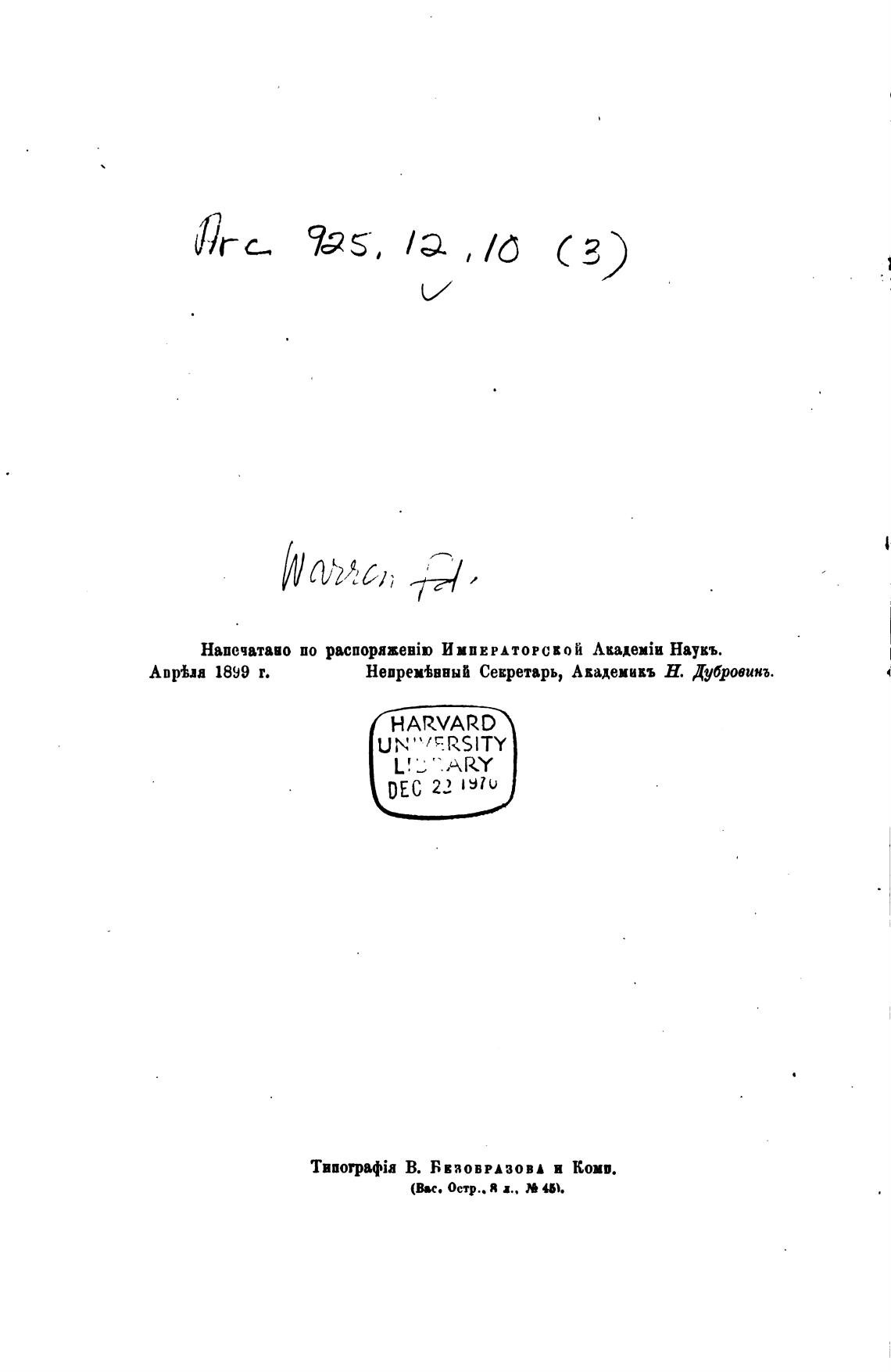 Напечатаво по pacnopmeBio ИМПЕРАТОРСКОЙ Наукъ.