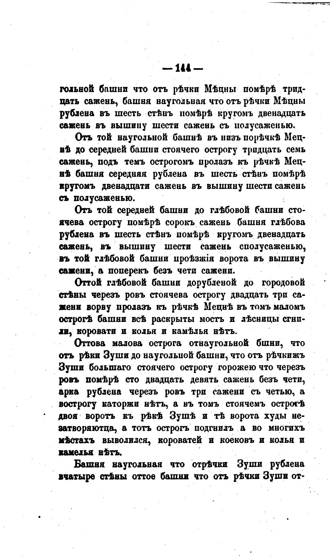 цать сажень, башня наугольная что отъ ррћчки Мјцны