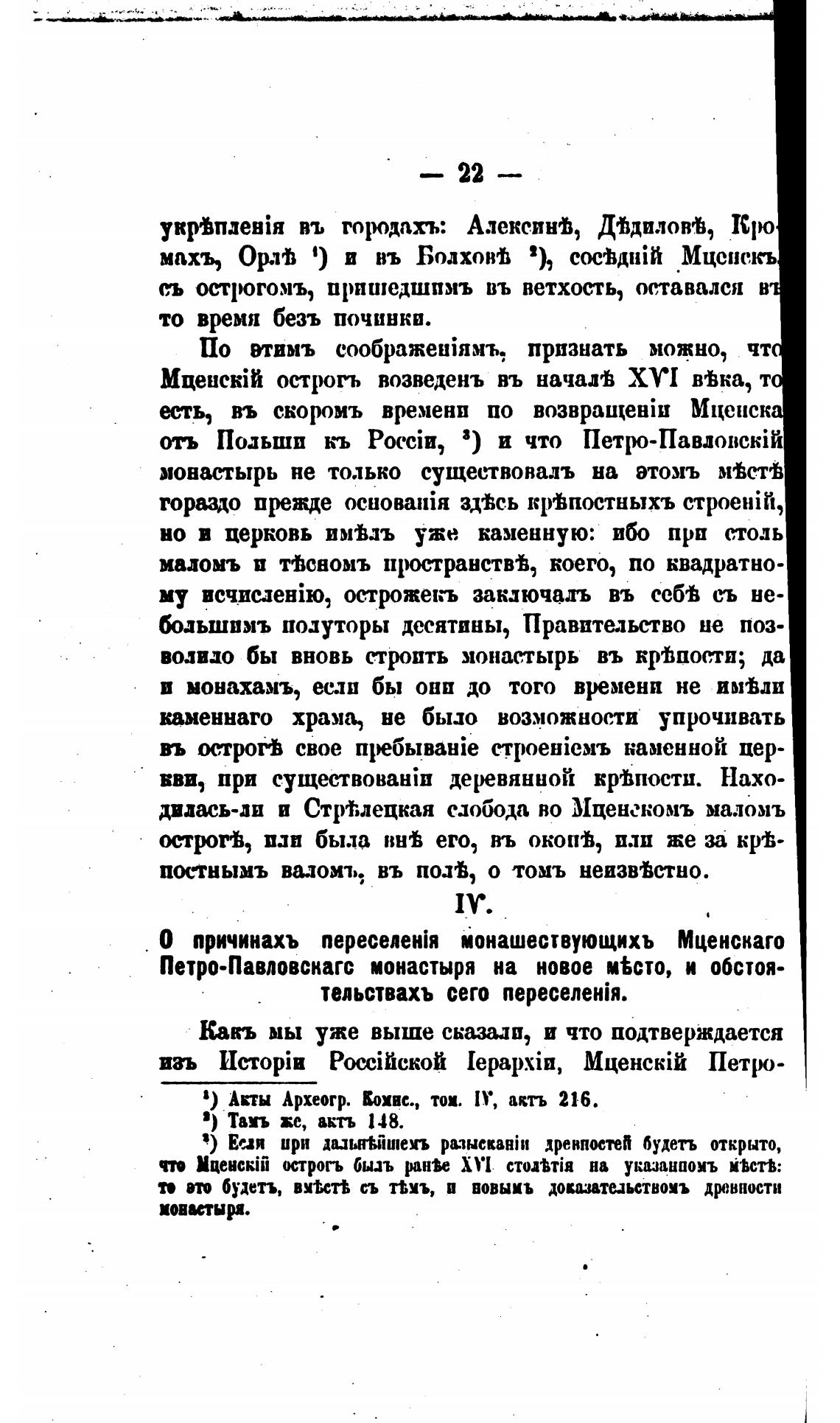 О причинахъ nepeceneHiR монашествующихъ Мценскаго