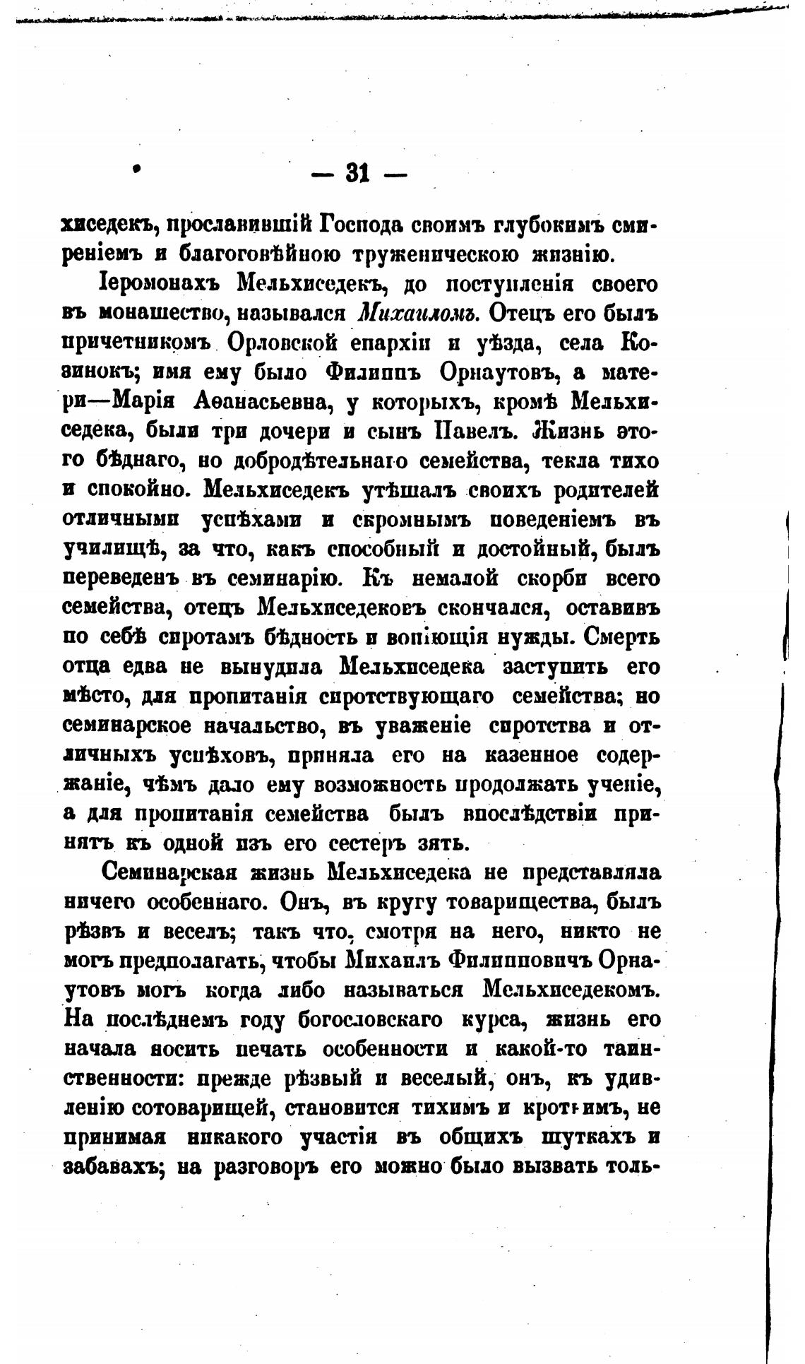 и спокойно. Мельхиседекъ уттшалъ своихъ родителей