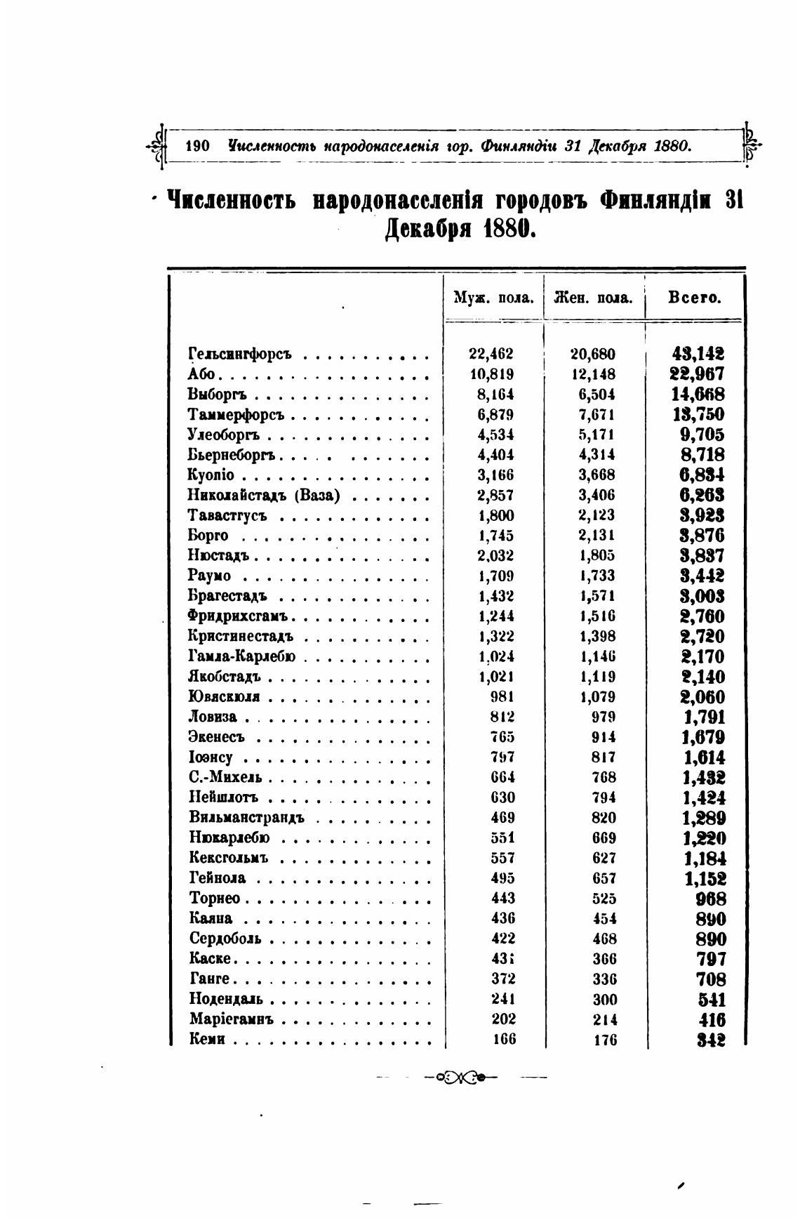 Численность народонаселен1я городовъ Финлянд1и 31