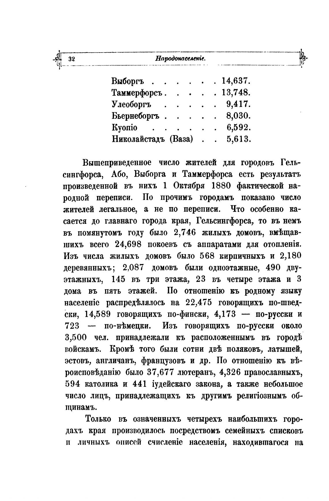 родной переписи. По прочимъ городамъ показано число