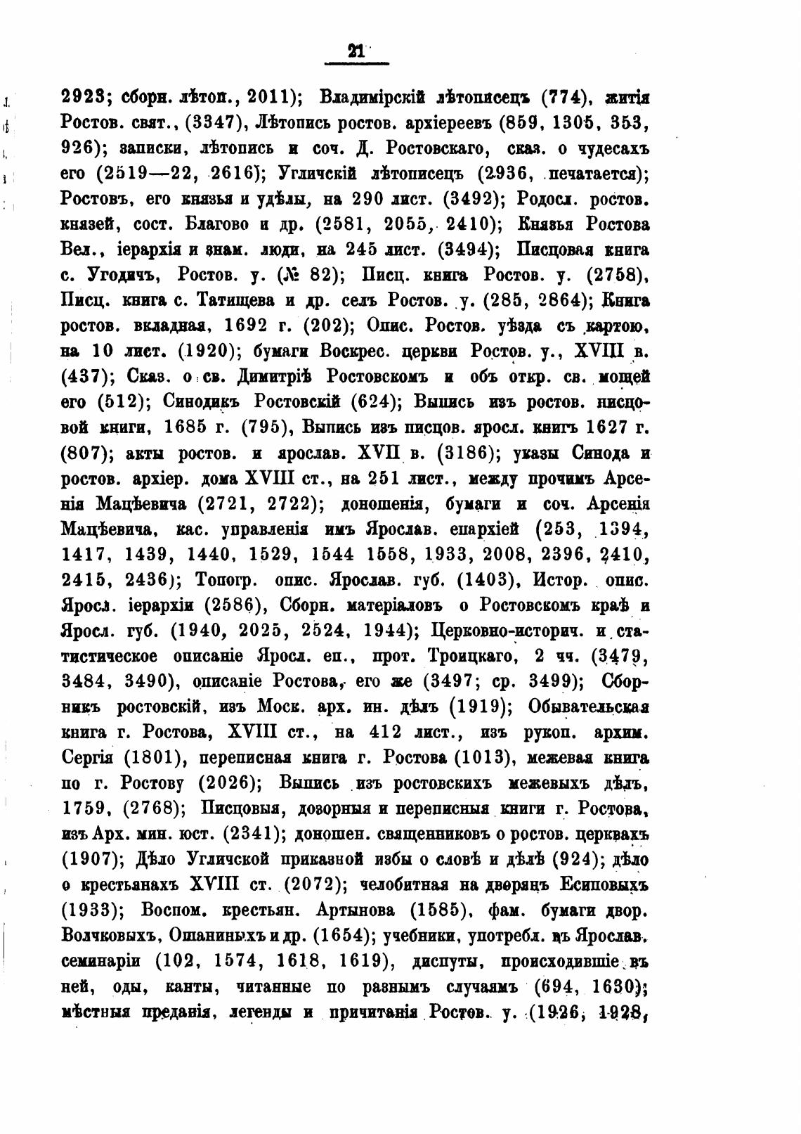 его (512); Синодикъ Ростовсо (624); Выцись изъ ростов. писцо-