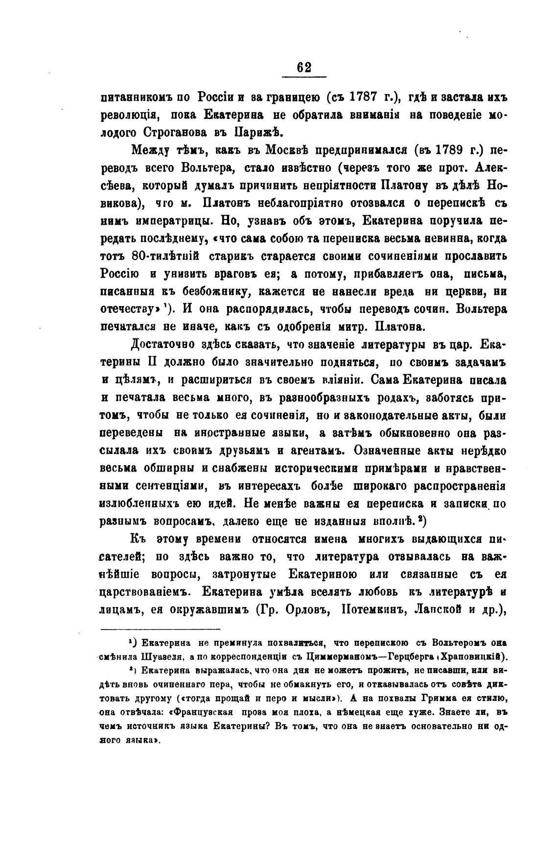 х) Екатерина не преминула похвалиться, что перепискою съ Вольтеромъ она