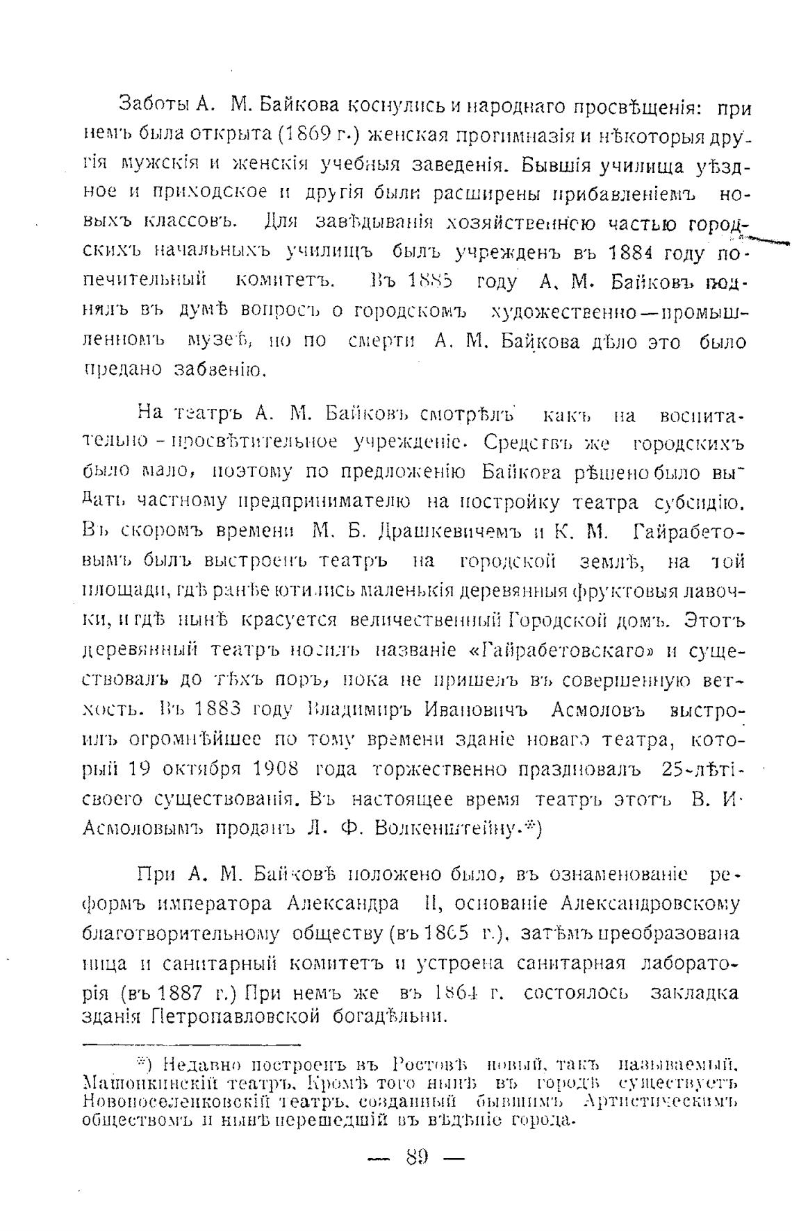 На театръ А. М. Байков•ь смотрћлъ•