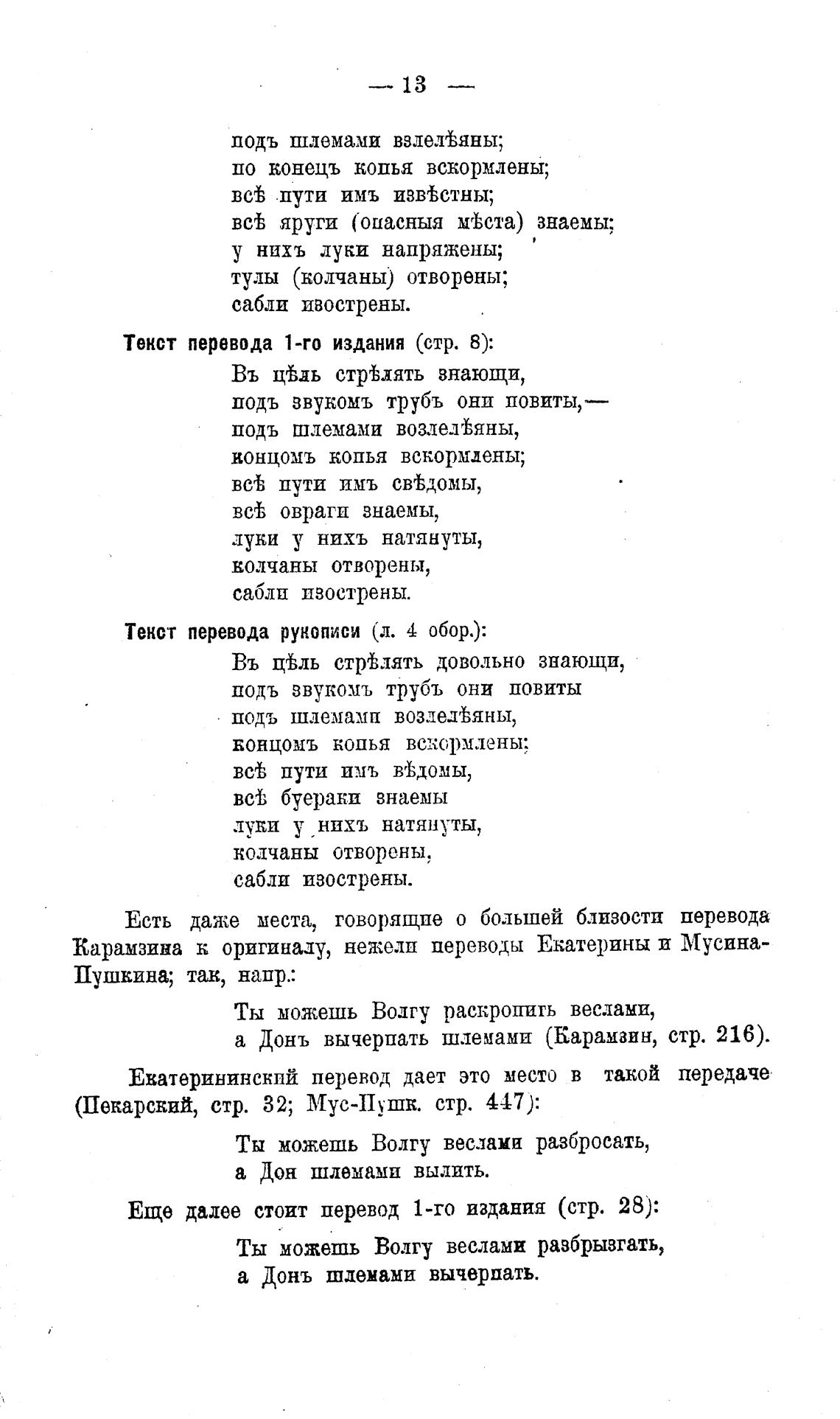 Карамзина оригинаду, нежелп переводы Екатерины и Мусина-