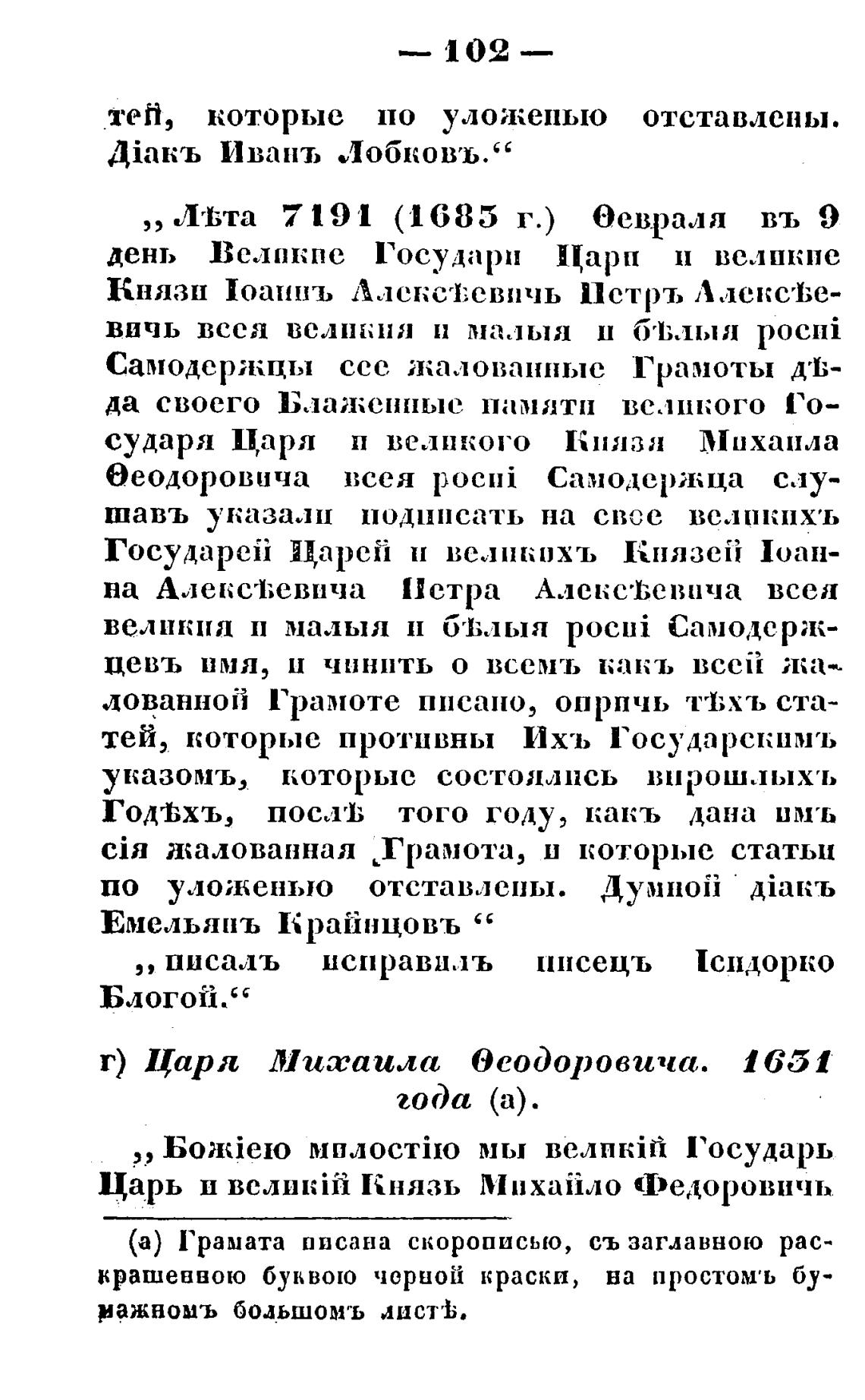 г) Царя Михаила ОеоДоровича. 1651