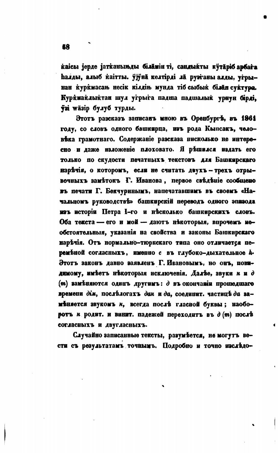 году, со словъ одного башкирца, оъ рода Кыпсакъ, чмо--