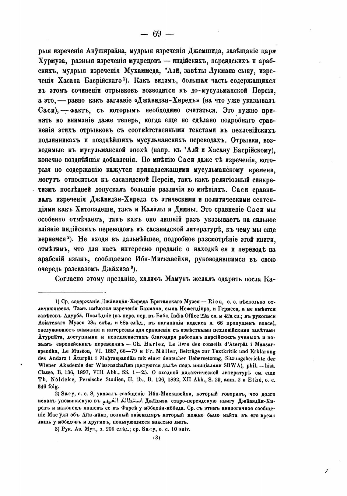 вынь европейскимъ переводамъ — Ch. Harlez, Le livre des conseils d'Aterpat i Mansar-