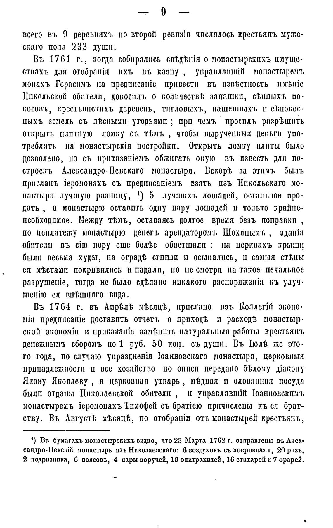 1) Въ бумагахъ монастырскихъ видпо, что 23 Марта 1762 г. оправлены въАлек-